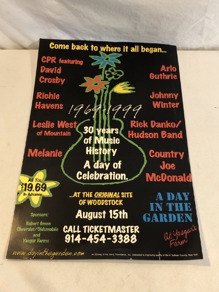Promotional Flyer For “A Day in the Garden” , a 30th Anniversary Anniversary Celebration of Music History Woodstock. - 17” x 11”