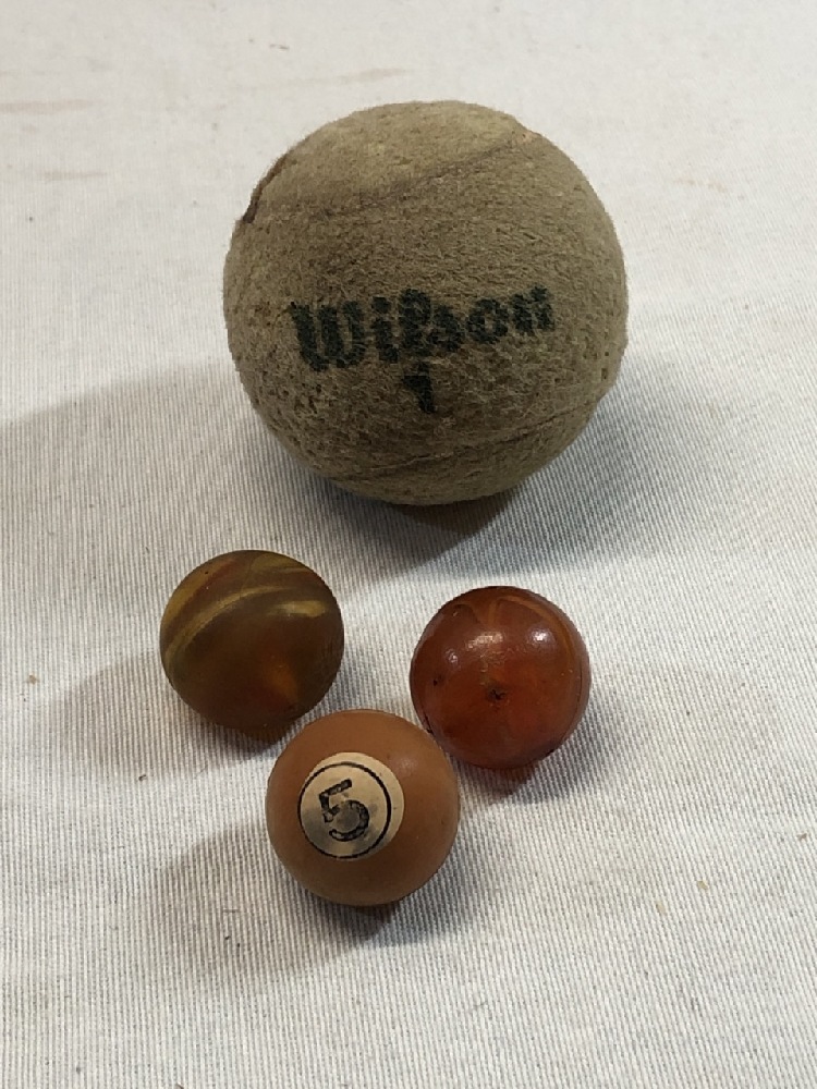 Original Glass Click Clacks, Cracker Jack Prizes and Bouncy Balls