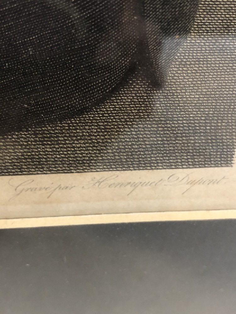 Portrait Framed Engraving - “Gravé Par Henriquet Dupont” - 16 1/2” x 20 1/2” - Glass in frame has crack