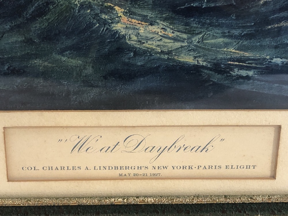 Jean Jacques Pfister Signed Charles Lingbergh TransAtlantic Flight Litho - “We at Daybreak” 1927- 25 1/4” x 23 1/4”
