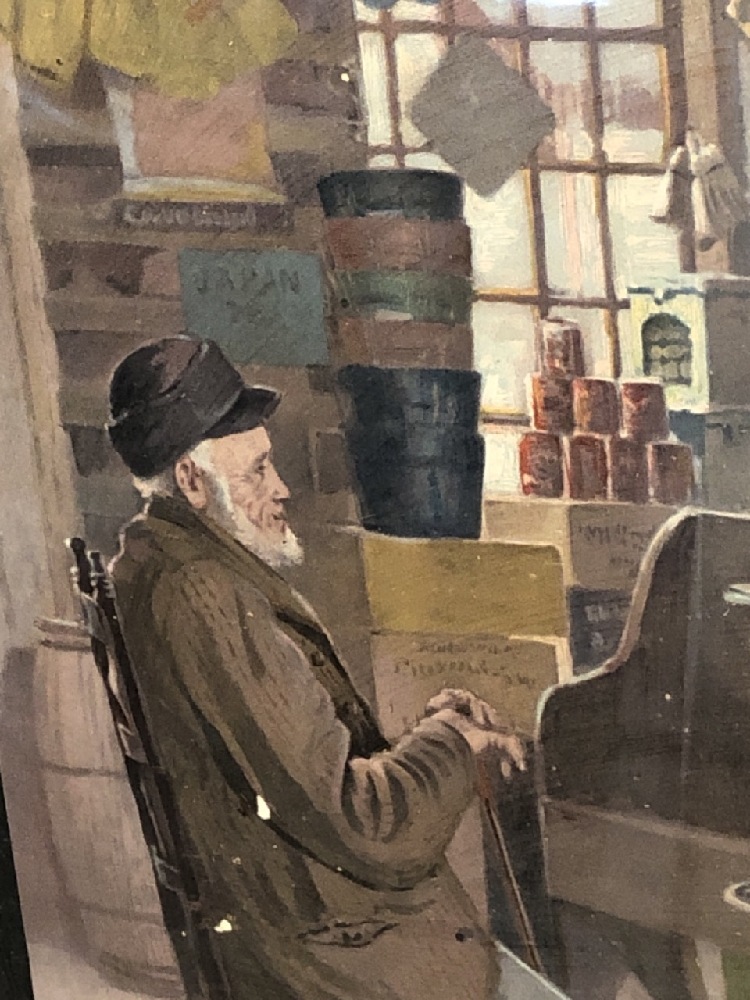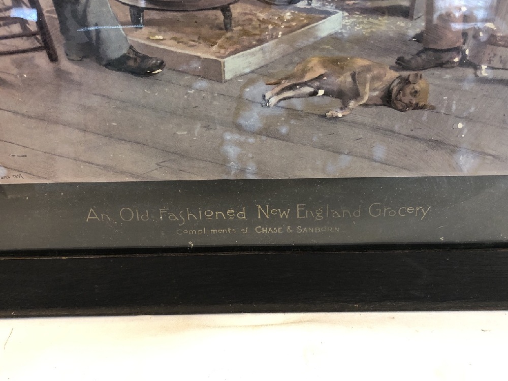 “An Old Fashioned New England Grocery” Lithograph - Chase and Sanborn - Framed 23 3/4” x 26” - See Photos For Condition