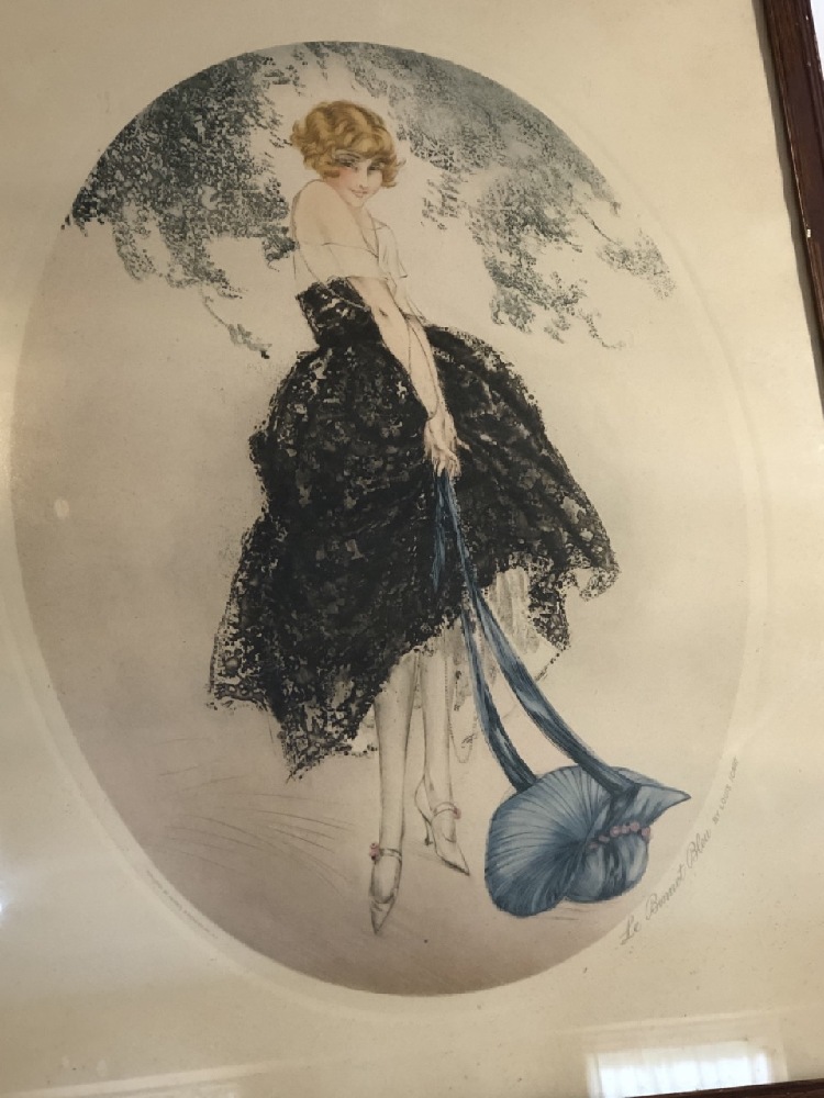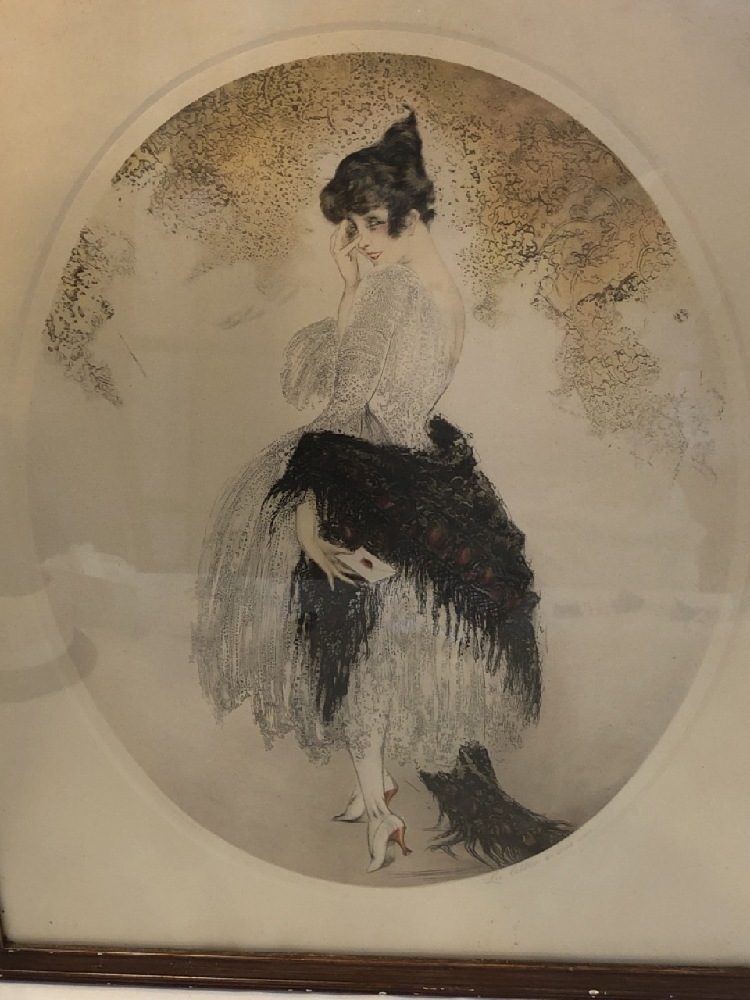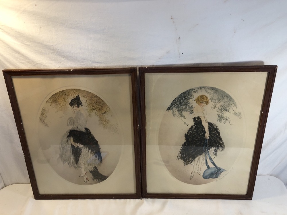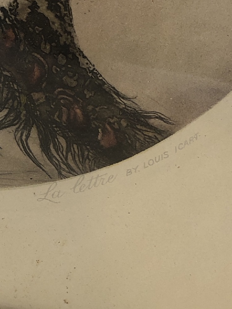 2 Louis Icart Framed Prints - La Lettre and Le Bonnet Bleu - Published by Morris & Bendien Inc NY - 21 1/4” x 17 1/4”