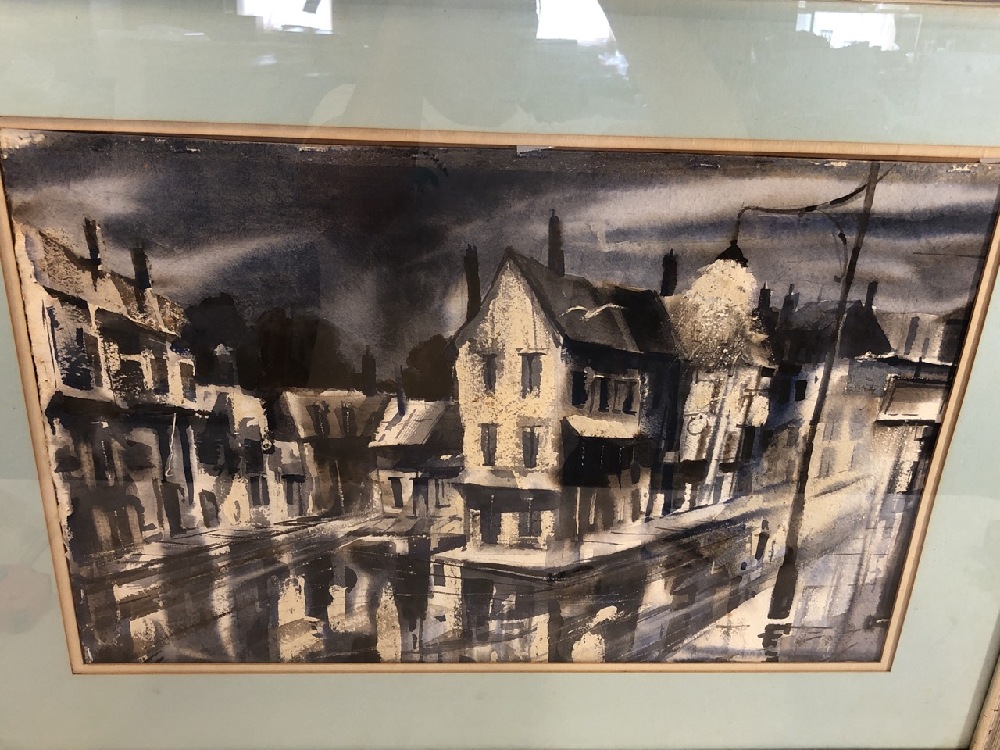 Framed Watercolor Street View - 29 x 22