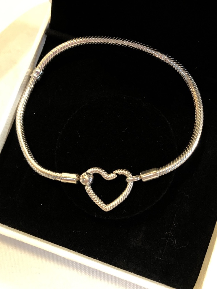 Sterling Silver Pandora Bracelet - Moments Heart Closure Snake Chain - in Box