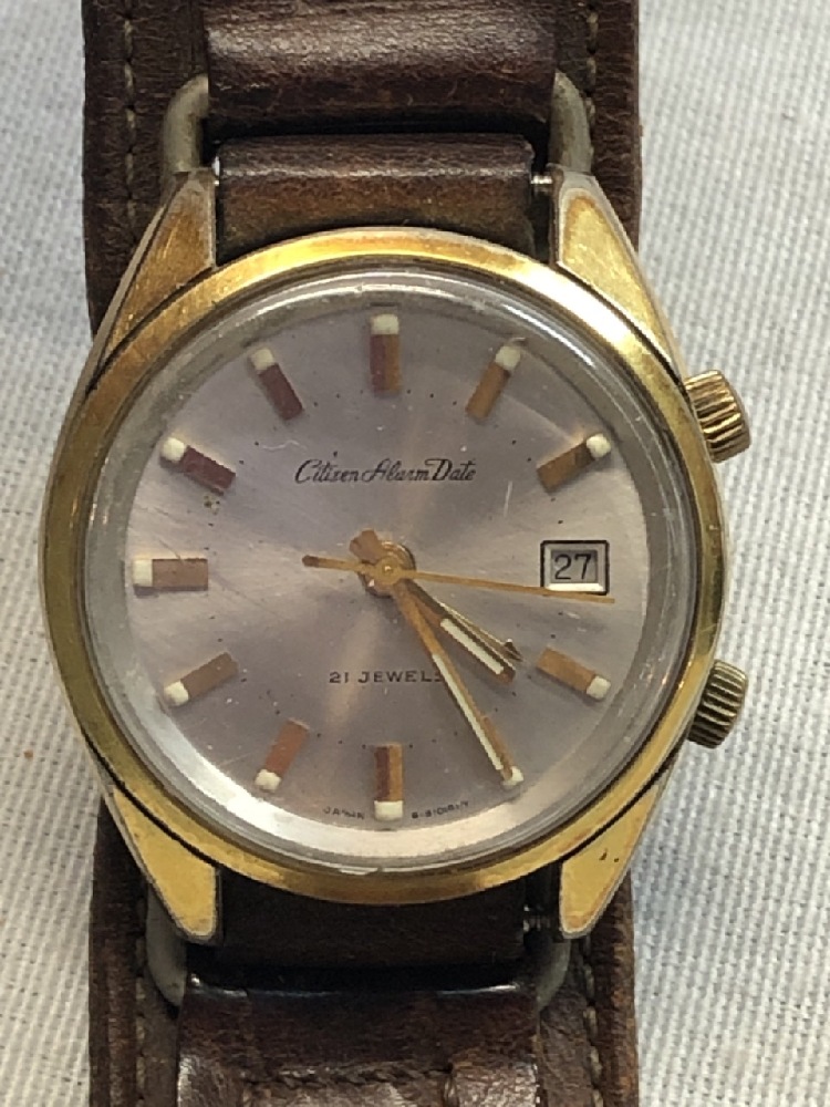 Citizens Alarm Date 21 Jewels Watch with Leather Band - Japan - 4-3100804
