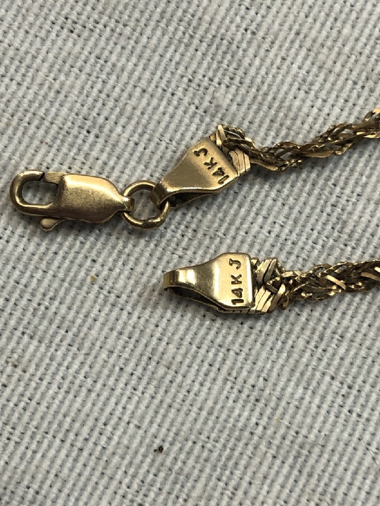 14K J Herringbone/ Rope chain Bracelet - 9 1/2” Long~ 3.7 Grams