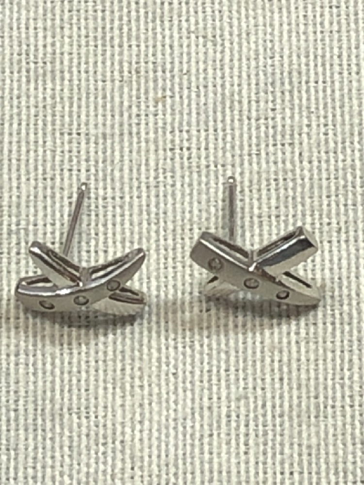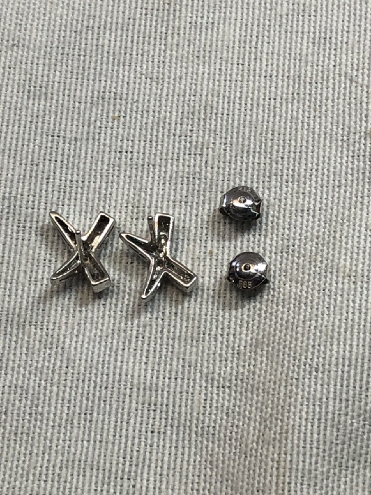 14 K “ infinity ??” Diamond “X” Stud Earrings - 1/2” Tall ~ Backings Stamped “585” ~ 1.8 Total Grams