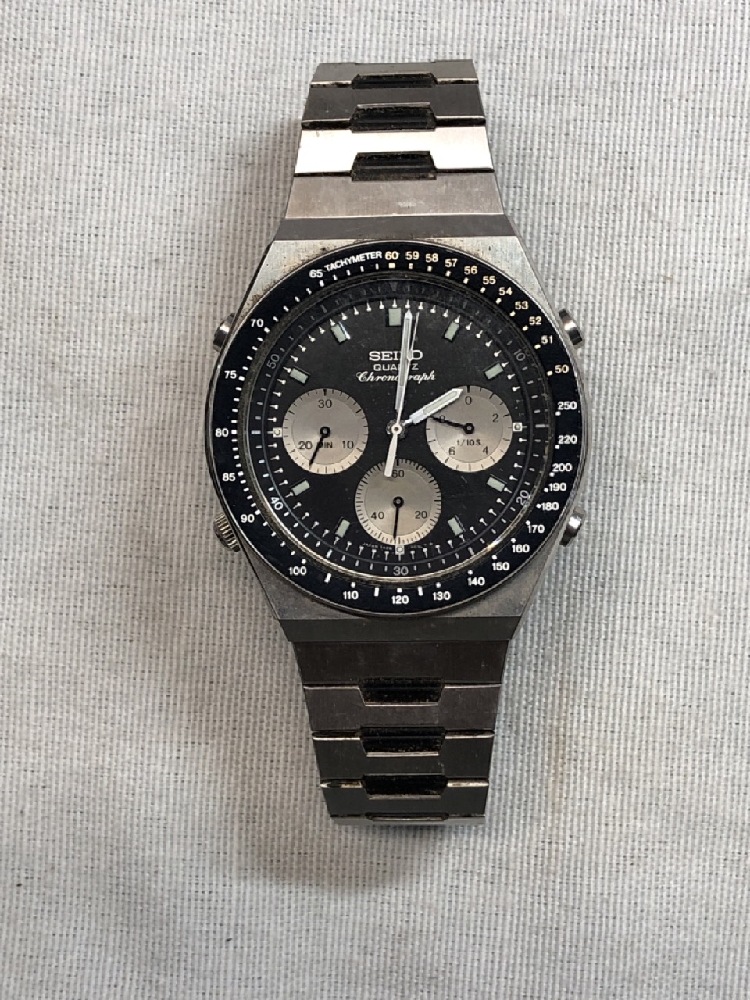 Vtg. Seiko 7A28-7039 “ Panda” Quartz Chronograph Mens Watch