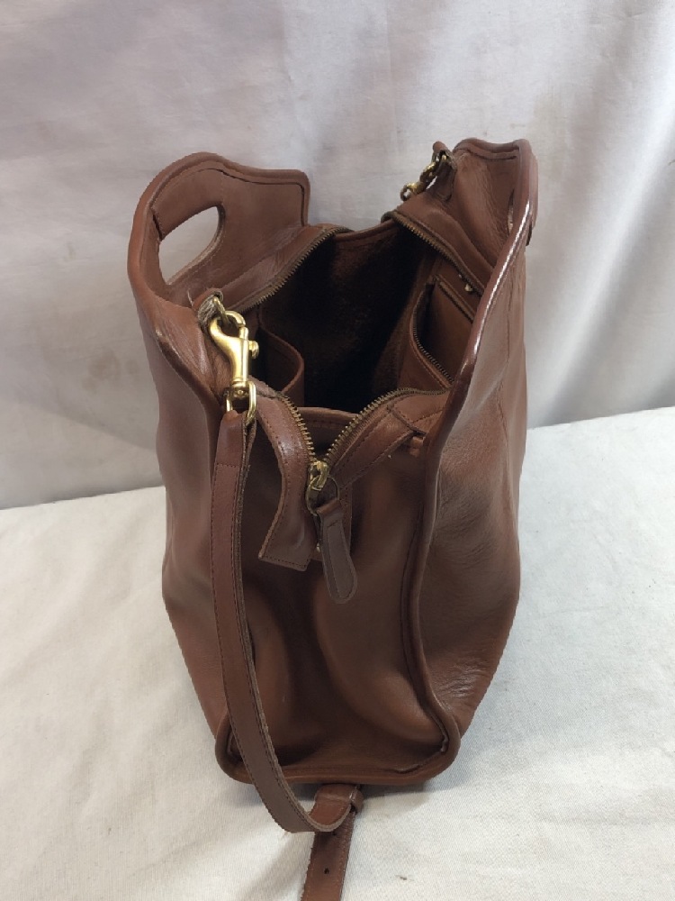 Vtg. Coach Brown Leather Briefcase Shoulder Bag - 9995 - Zipper Closure - Brass Accessories