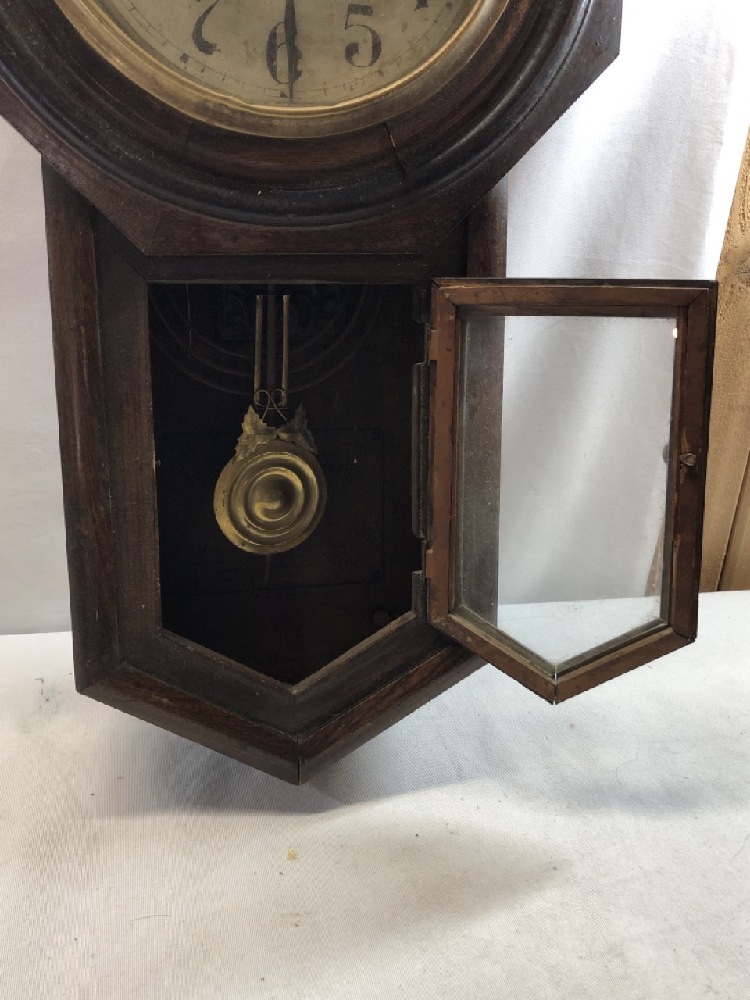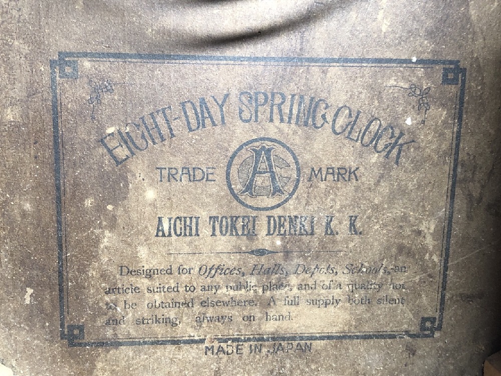 Antique Eight- Day Spring Clock - Aichi Tokei Denki K.K. Made in Japan- 23 1/2” Tall x 12 1/2” Wide