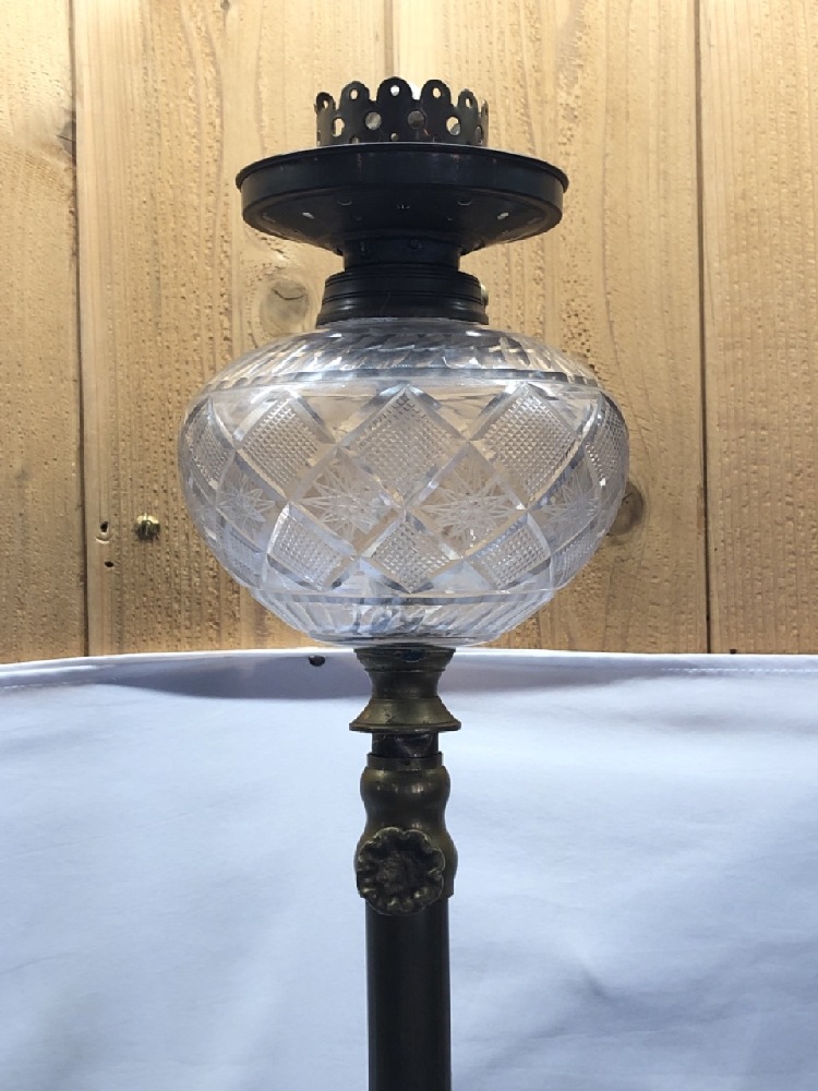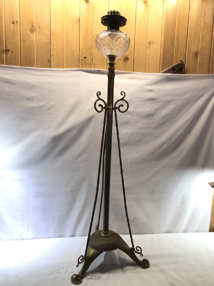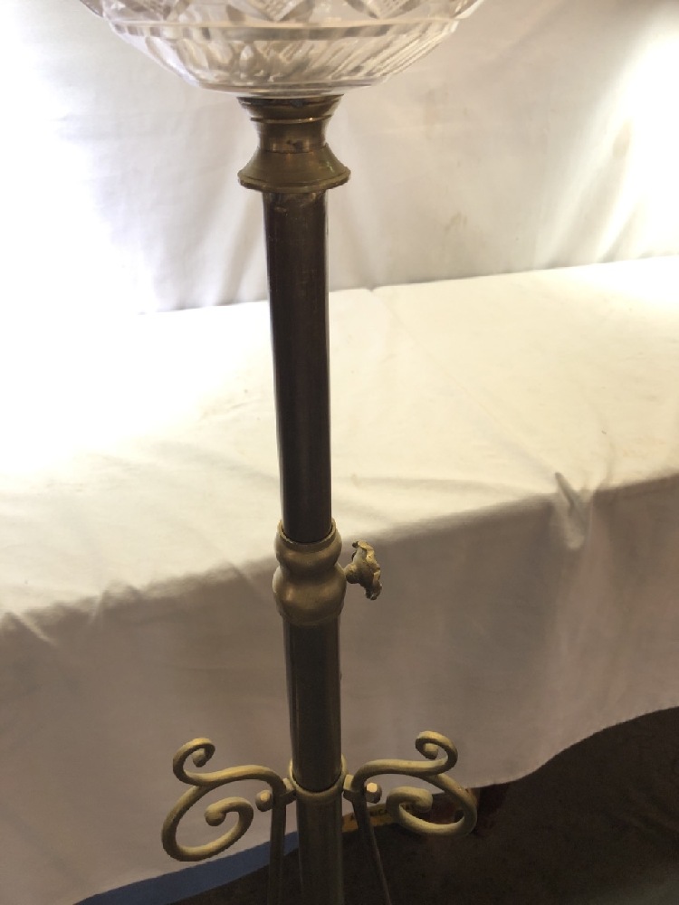 Antique Brass and Glass Piano Floor Lamp- Extendable Light