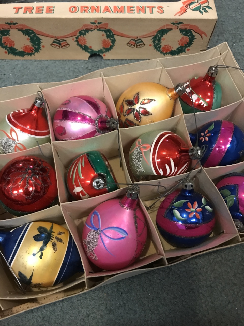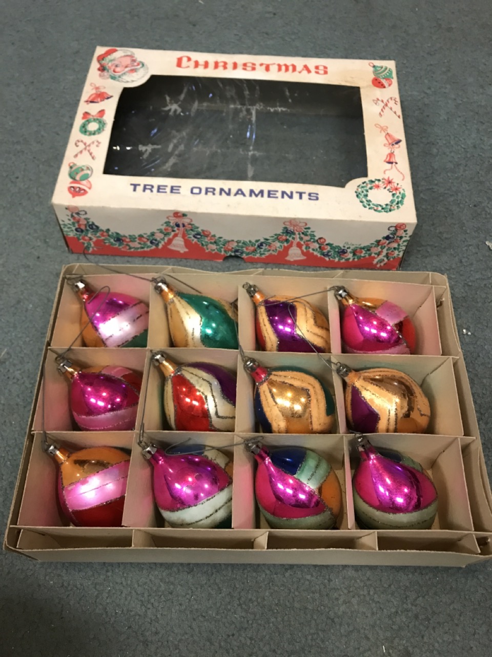 Antique Christmas Ornaments & Hooks- Mercury Glass- 77 Ornaments