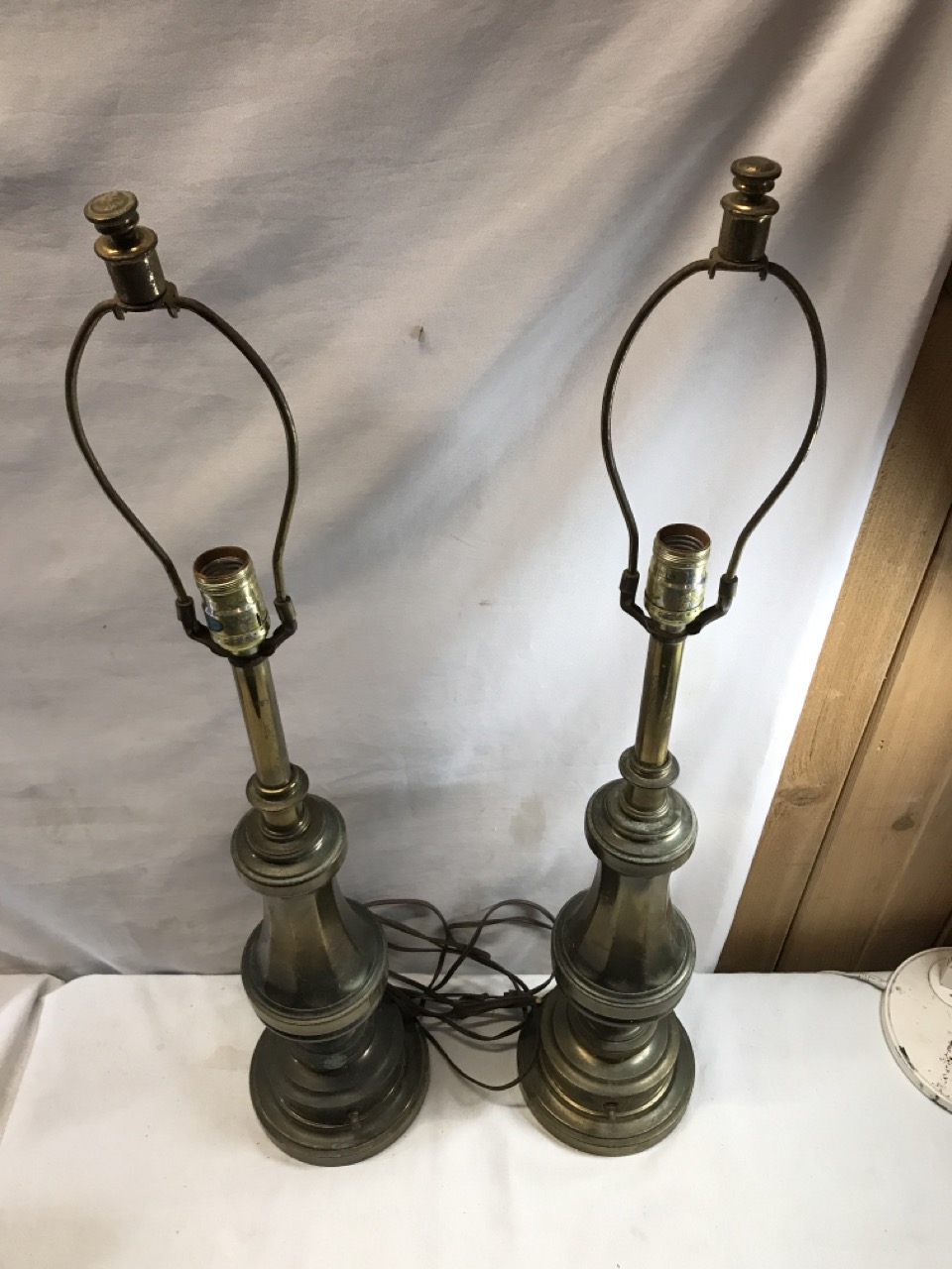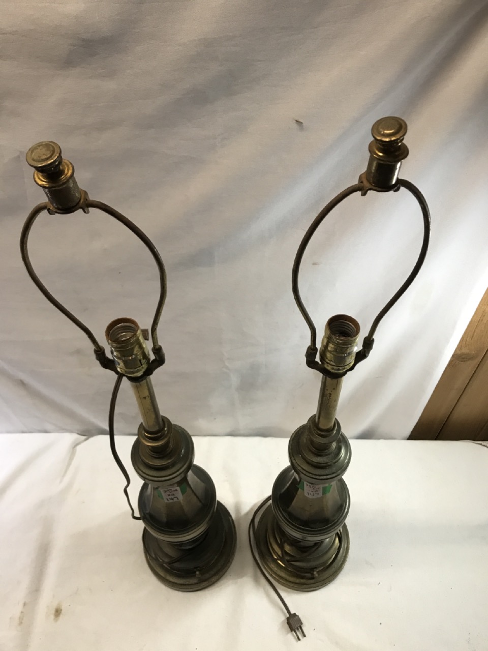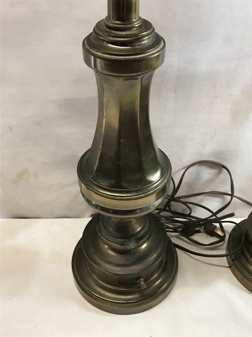 Pr. Mcm Stiffel Brass Paneled Lamps - 32” Tall - Both Work