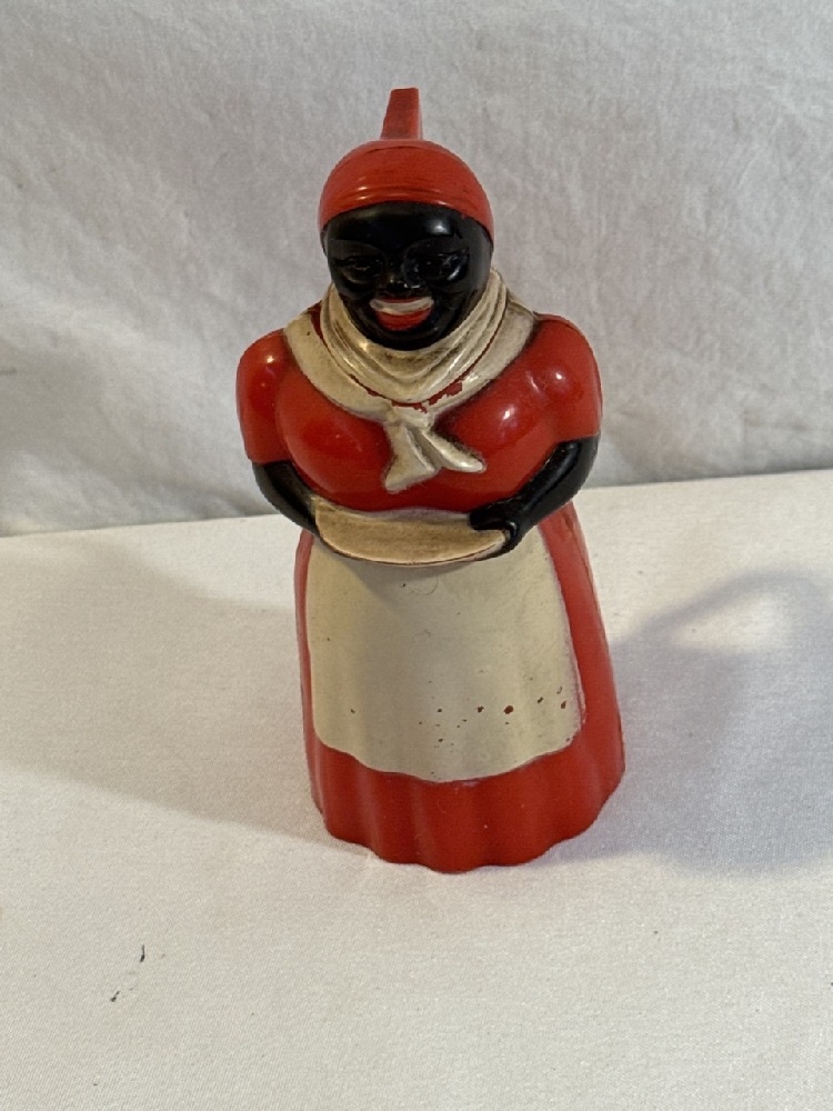 Vtg. Plastic Aunt Jemima Syrup Dispenser ~ “Mammy” - F & F Mold & Die Works , Dayton Ohio USA ~ 5 1/2” Tall