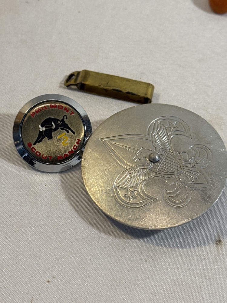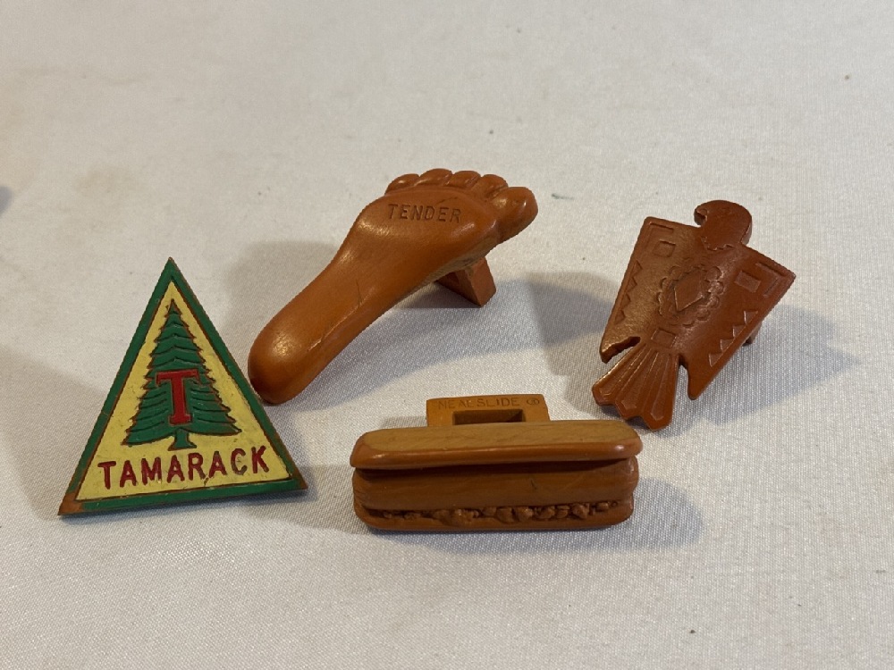 Vtg. Boy Scouts Neckerchiefs Slides - Neil Slide, Some Handmade, Philmont Arrowhead shaped, BSA aluminum and More