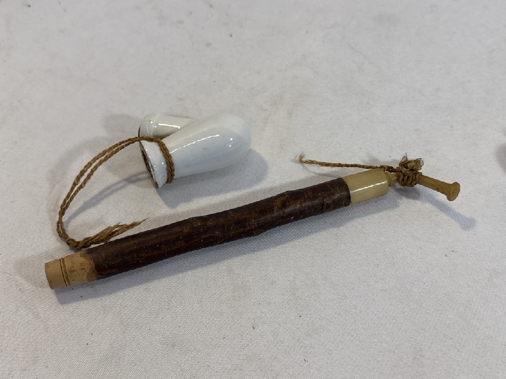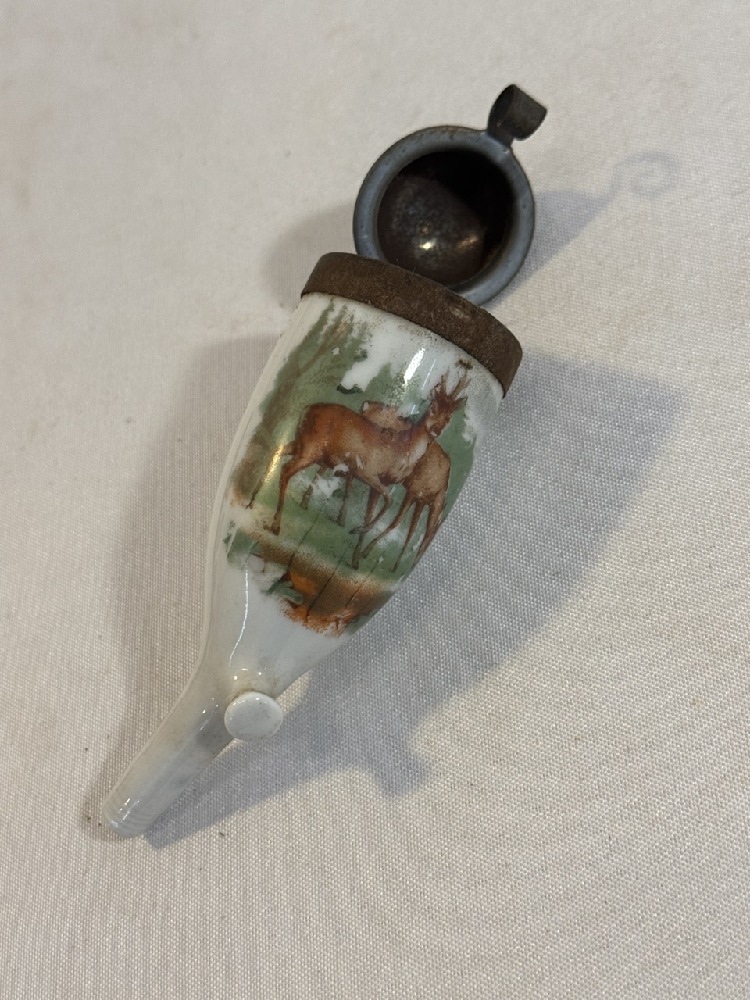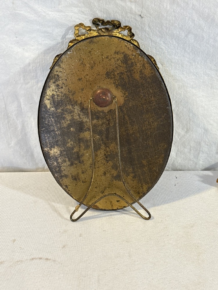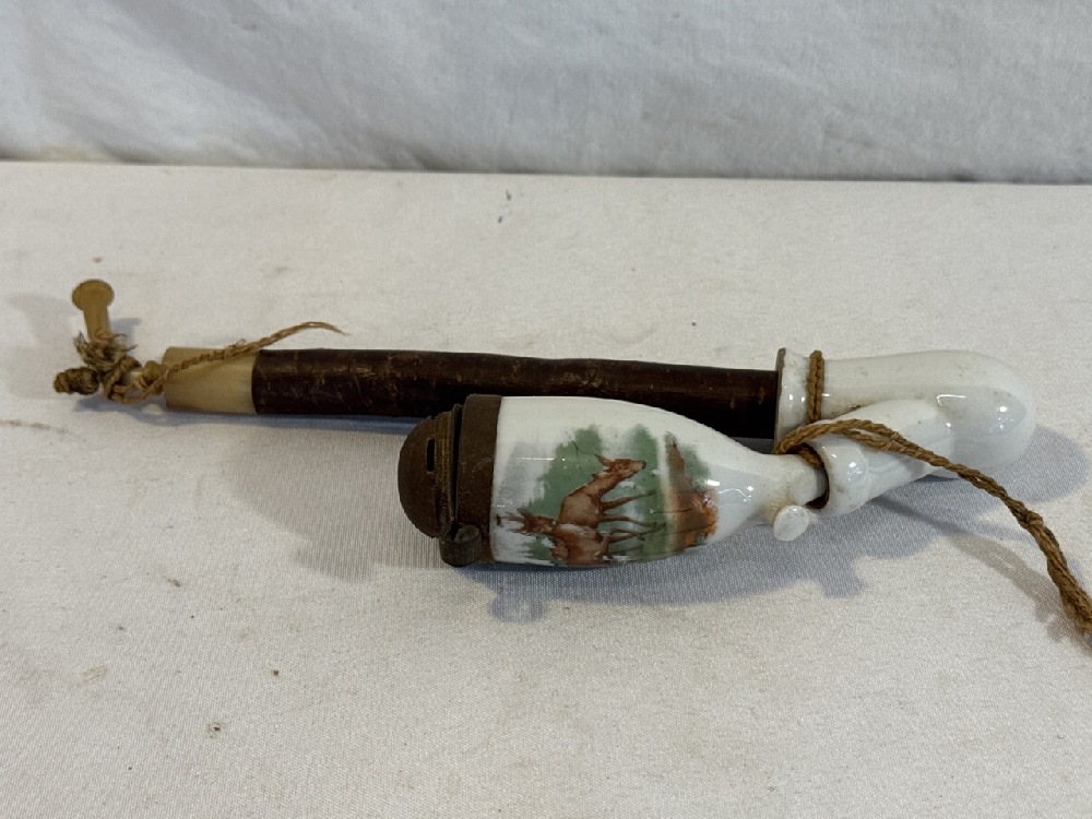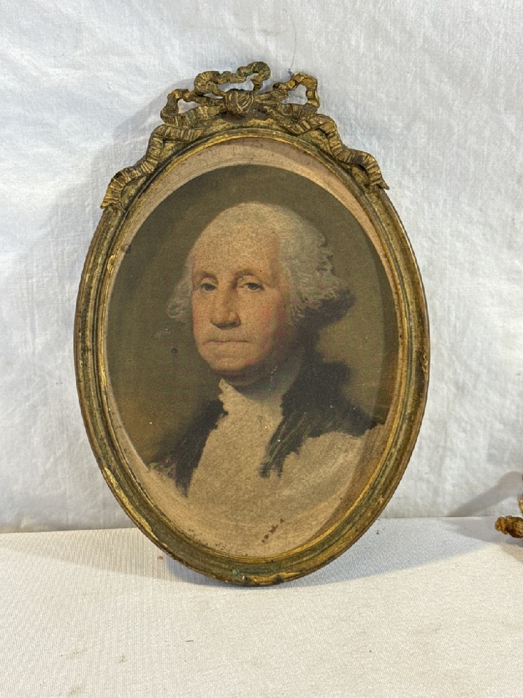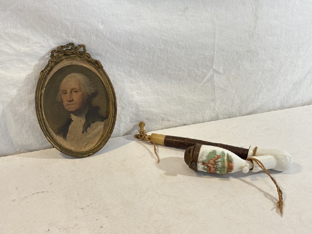 Vtg. German Ceramic, Wood and Celluloid Smoking Pipe and Washington BrassFramed Print ( 4 1/2” x 6 1/2” Oval)