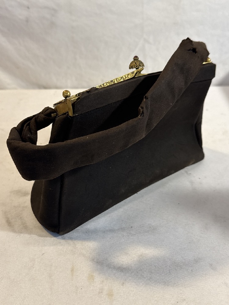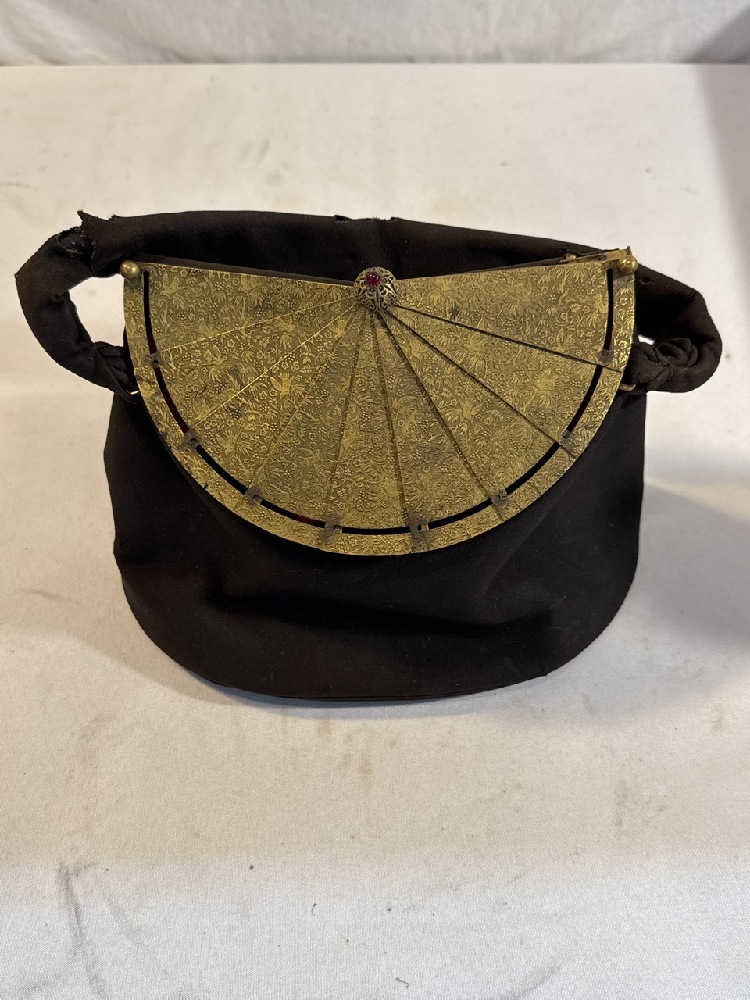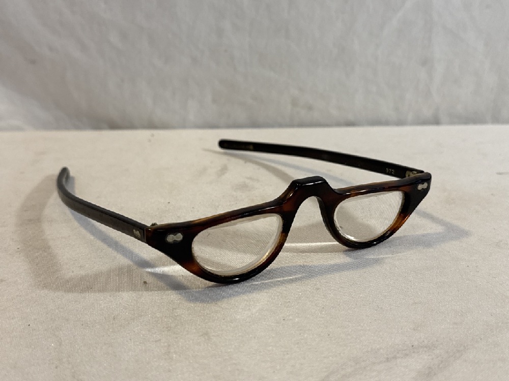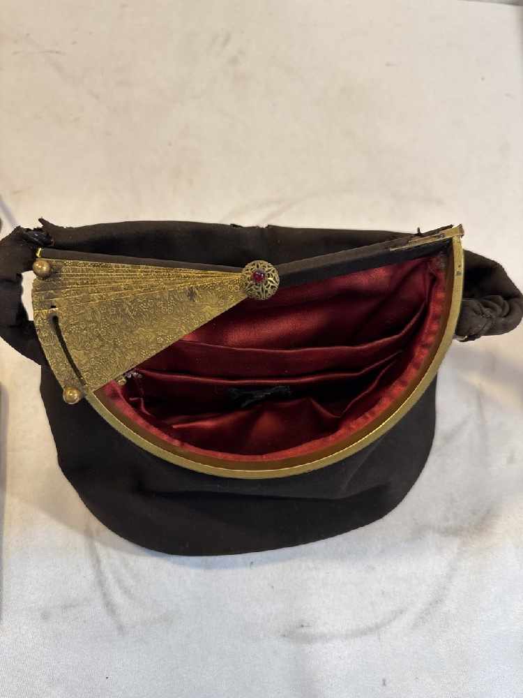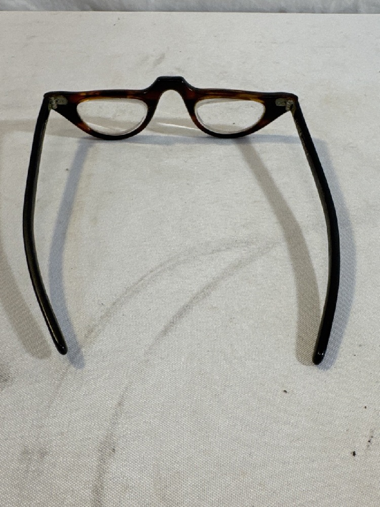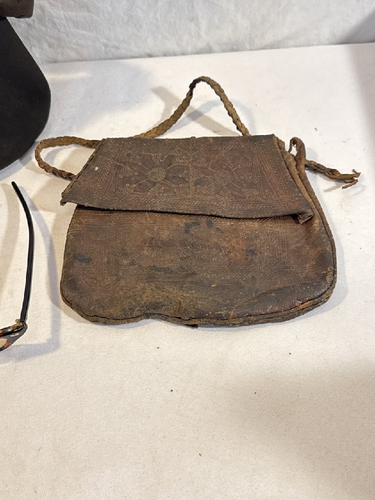 Vtg. Purses and Eyeglasses - Cerny Italy Fan Opening Purse, Brown Leather (handle needs Repair) , Fonda Brown Tortoise Cat Eye Glasses