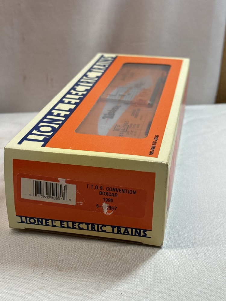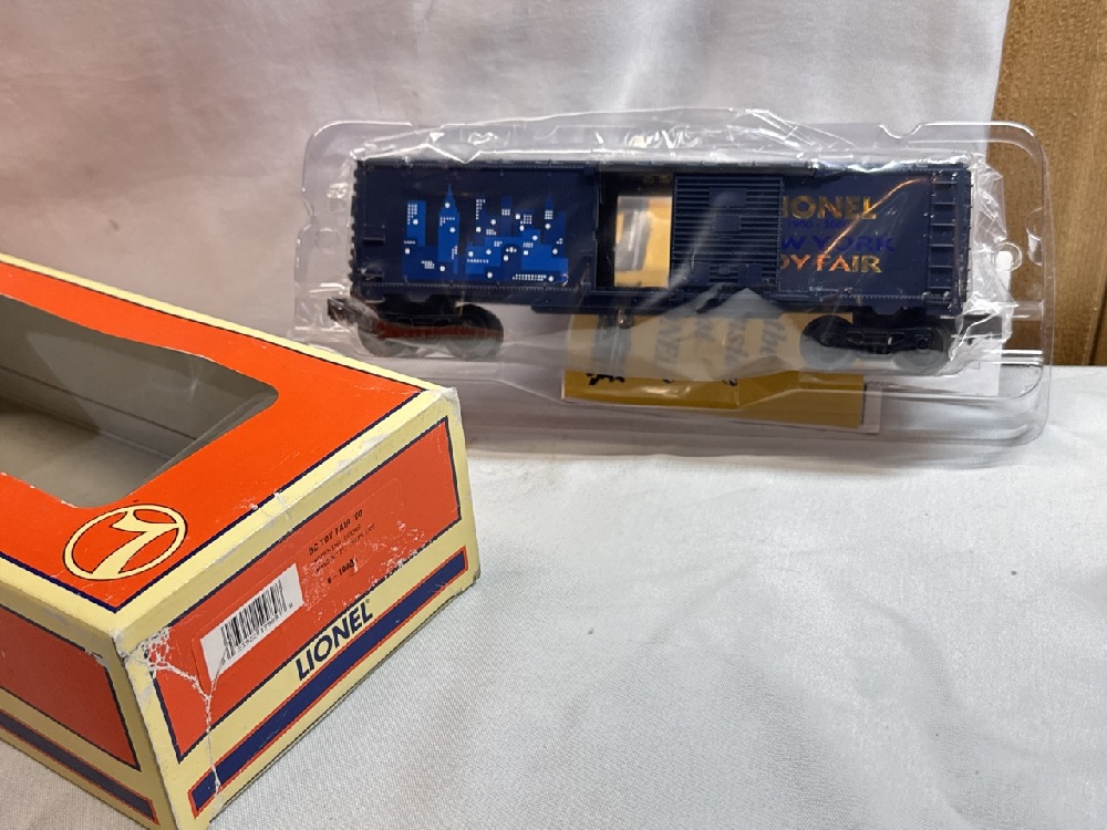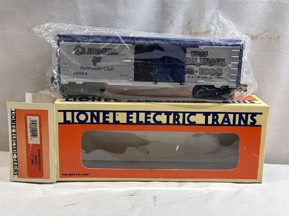 Lionel Train Cars including BC Toy Fair ‘00, 1993 Railroad Club Boxcar, T.T.O.S. Convention and Railroader Club Flat Car Vans