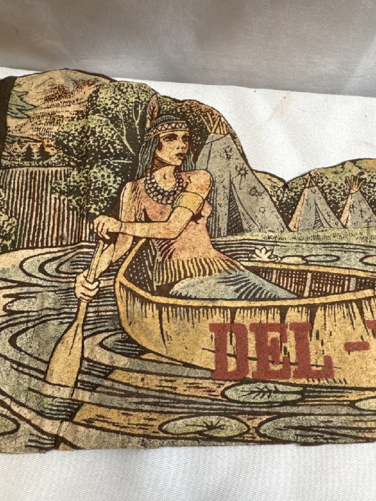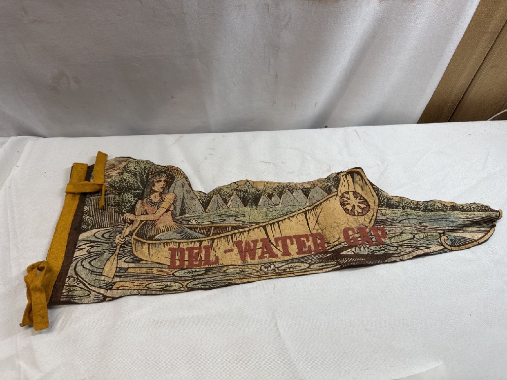 Vtg. Delaware Water Gap Pennant - Native in Canoe- 23” Long