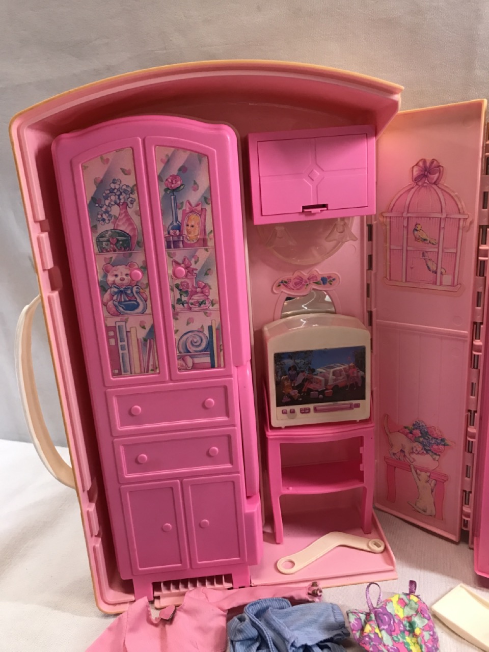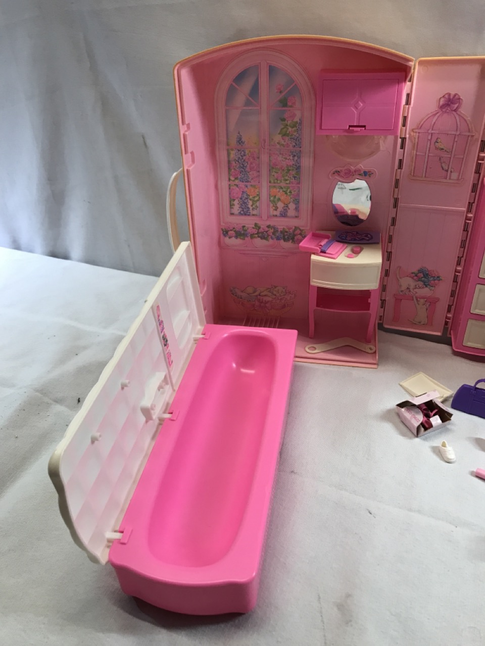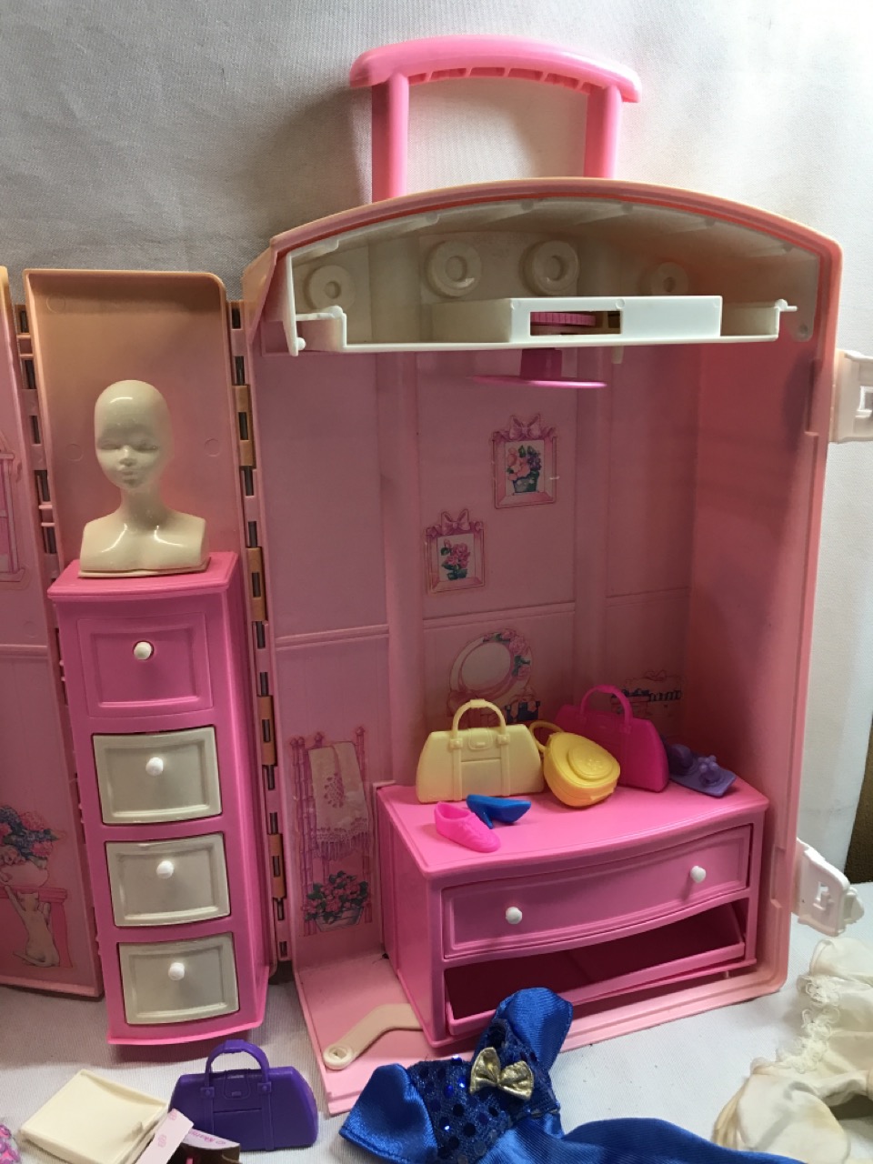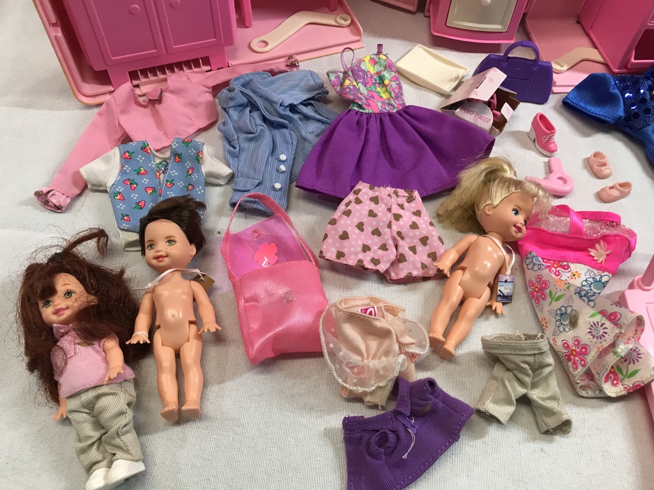 Vtg. Barbie Traveling Playset Luggage Suitcase House w/ Kelly Dolls, Clothing and Accessories
