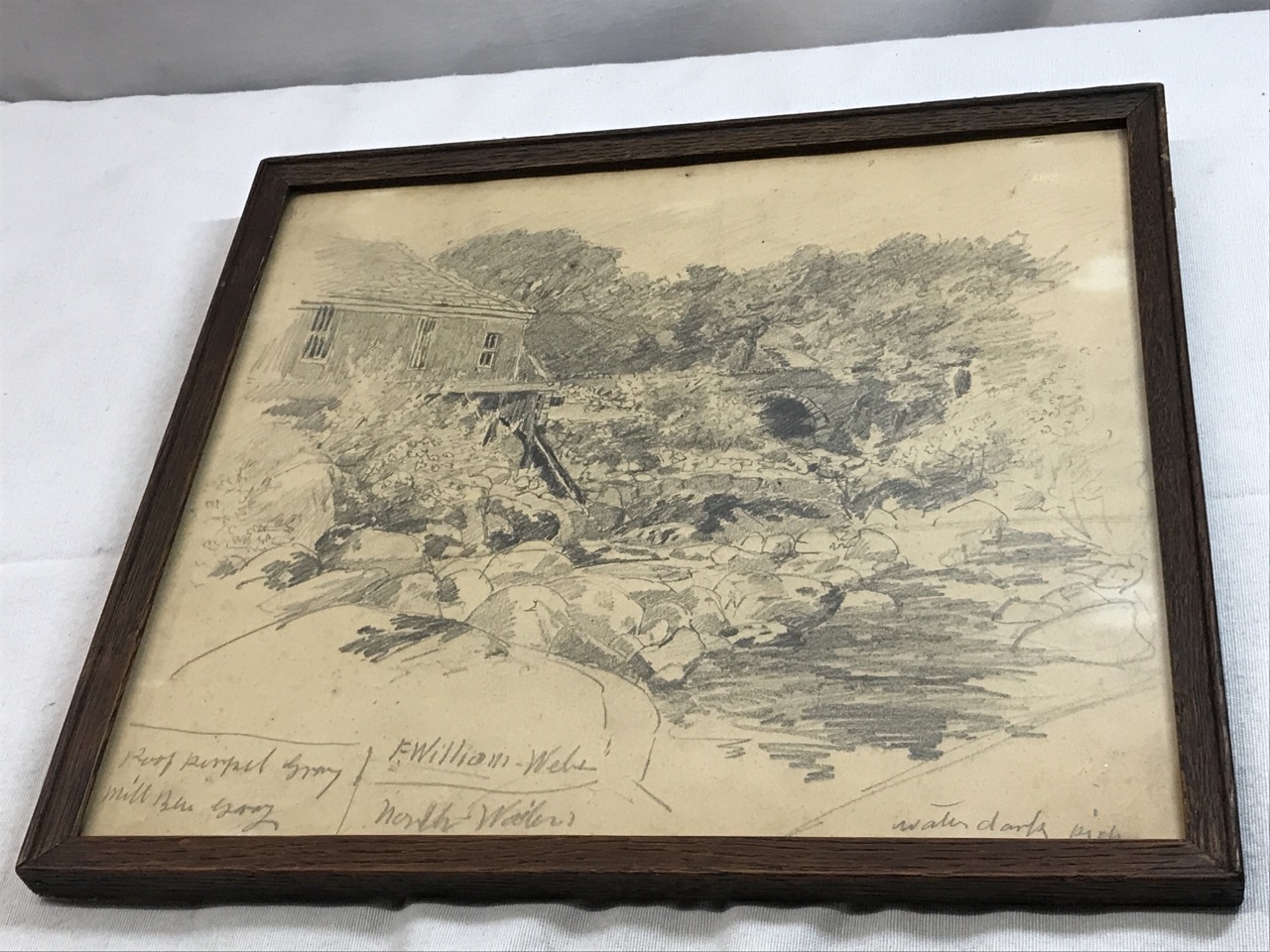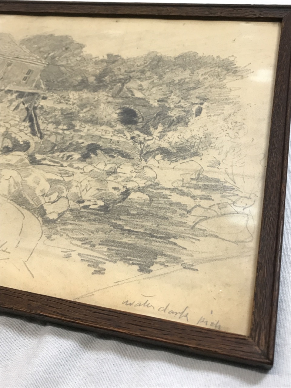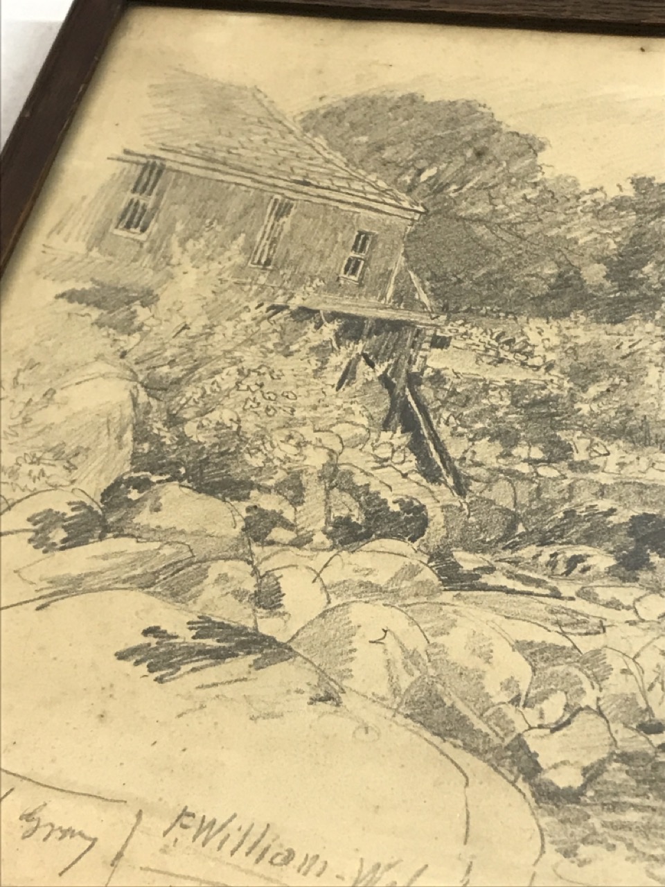 Vtg. Framed Signed Landscape Pencil Drawing - Signed Weber F. Pouter ~ 12 1/2” x 11 1/2”
