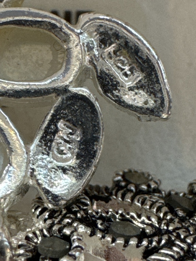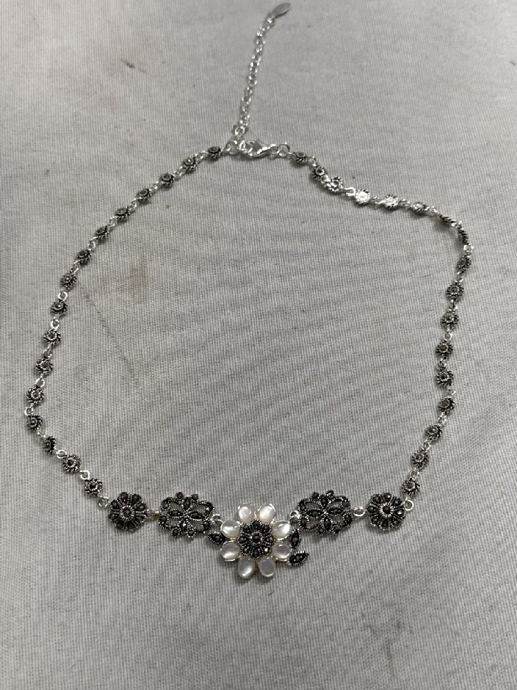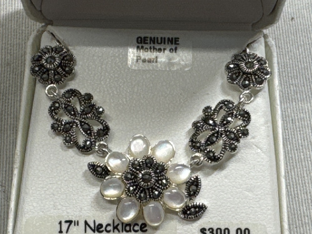 Genuine MOP Sterling Silver Marcasite floral Necklace -17” Necklace