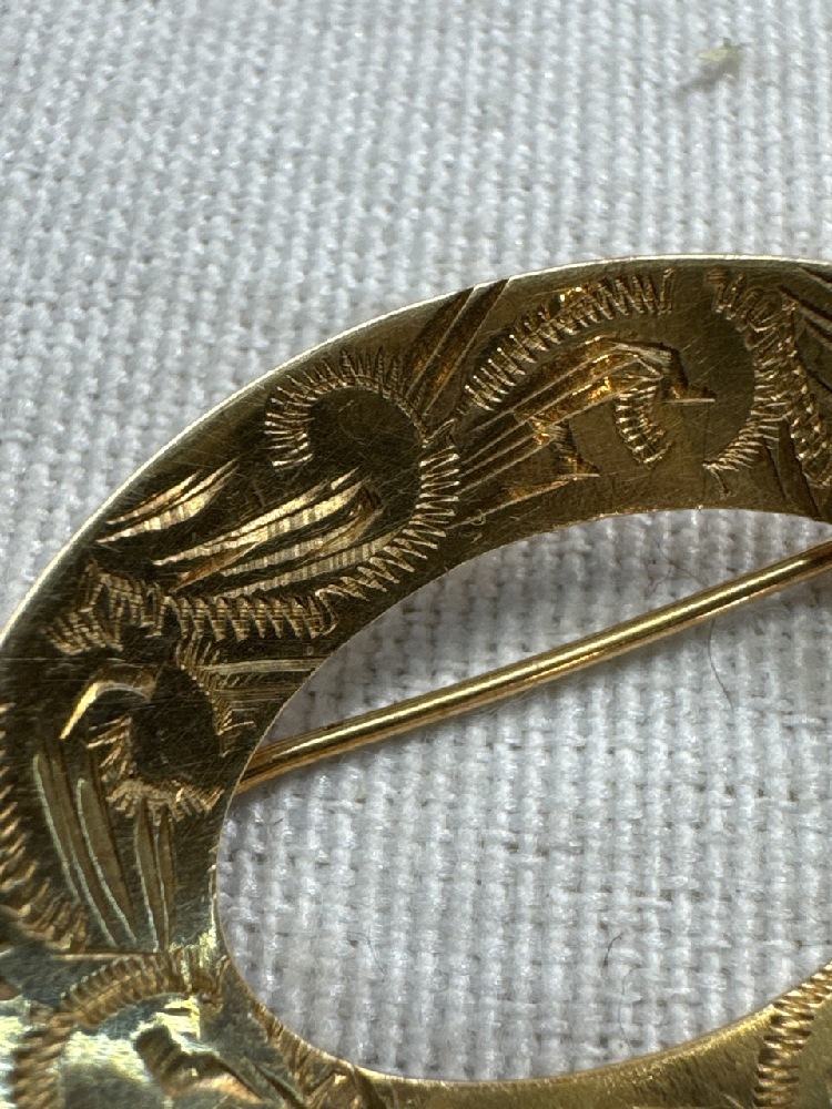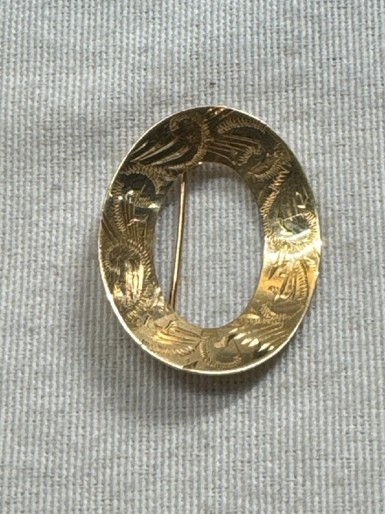 Vtg. 14K Engraved Oval Brooch - 1 1/2” x 1” - 2.9 Grams