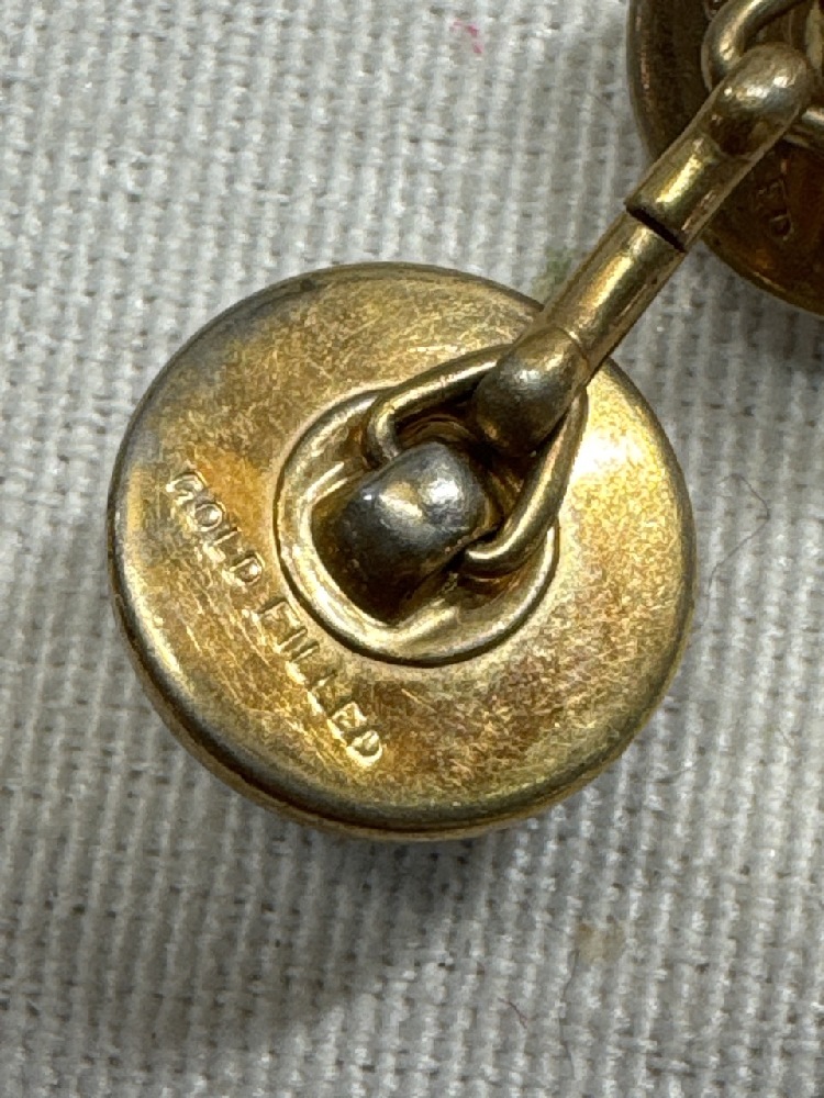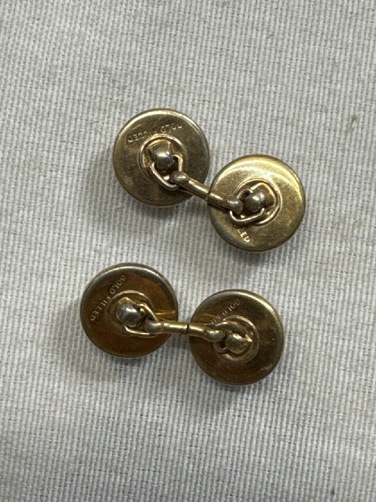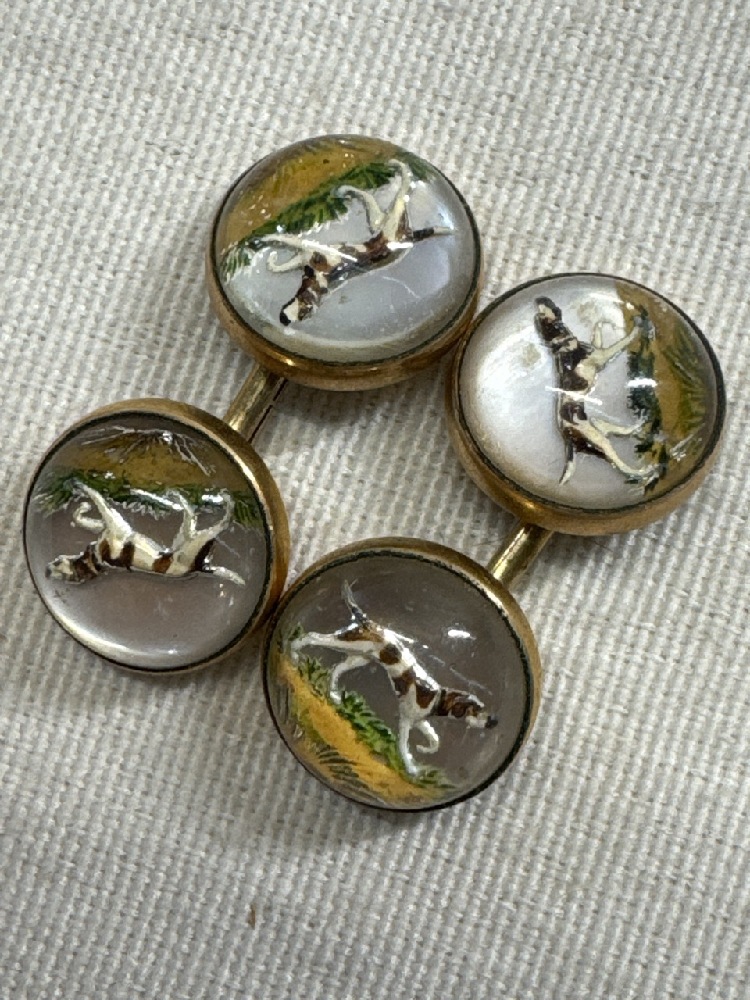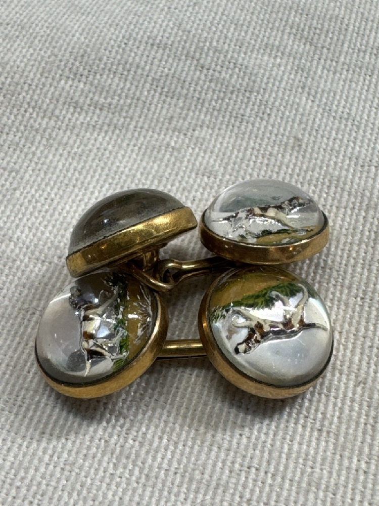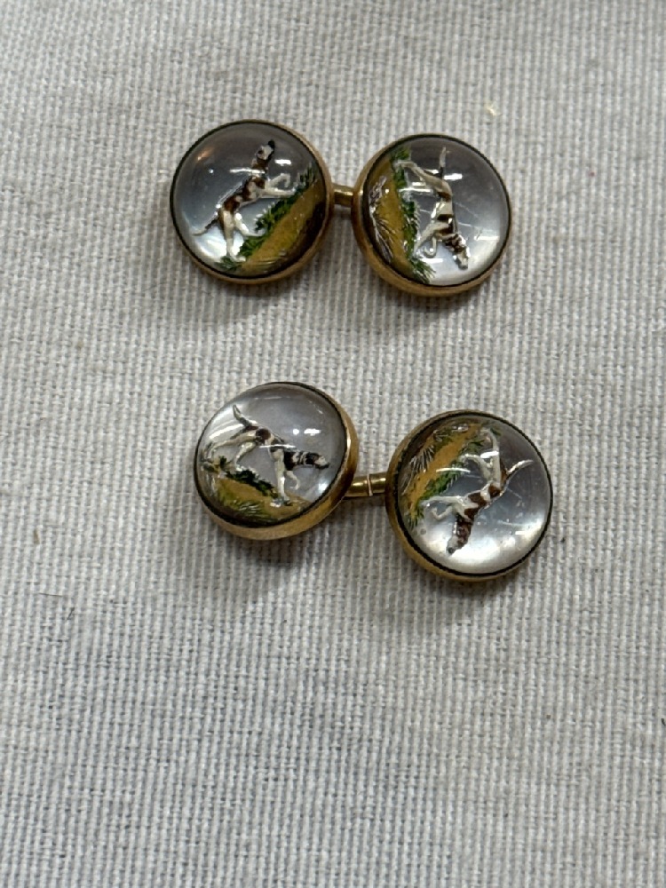 Pr. Antique Gold Filled Reverse Crystal Cufflinks - Dog Design