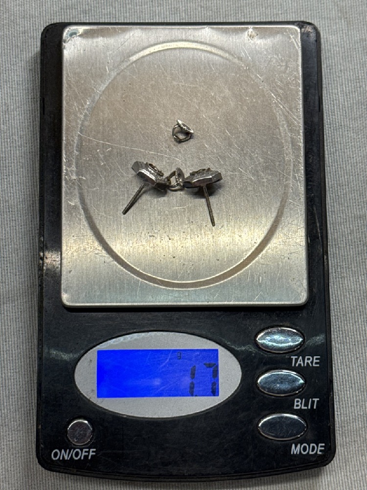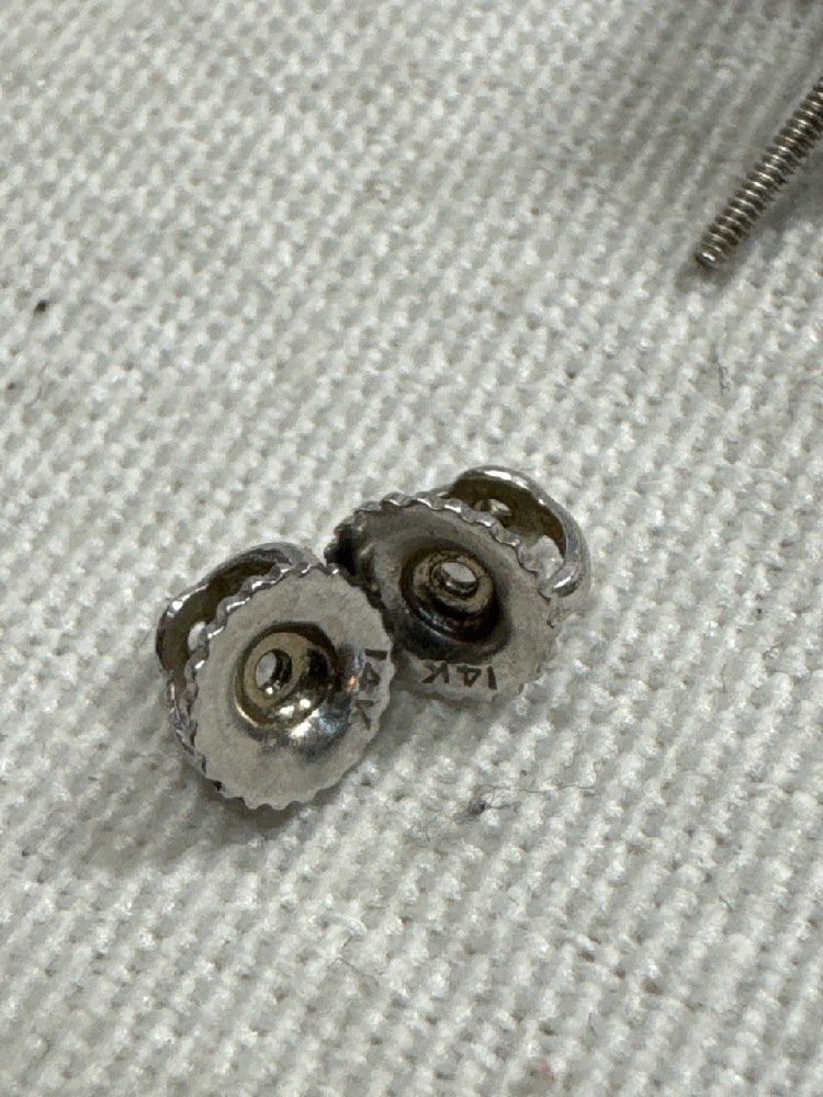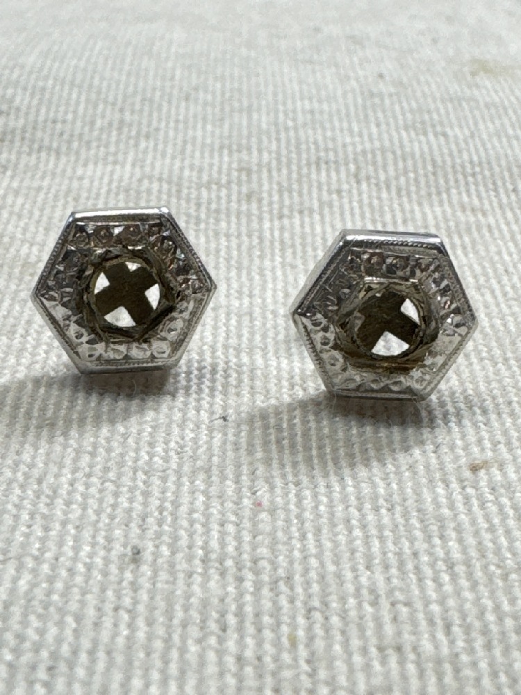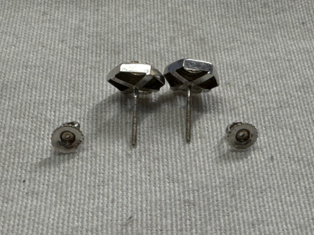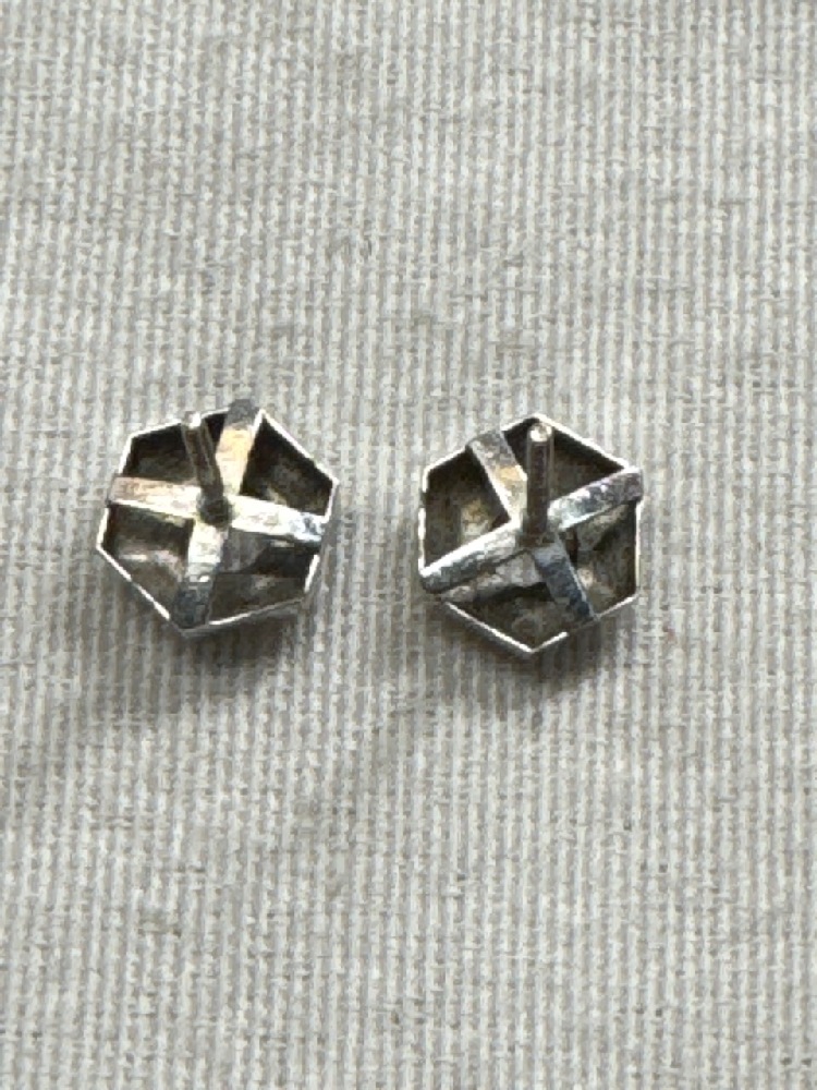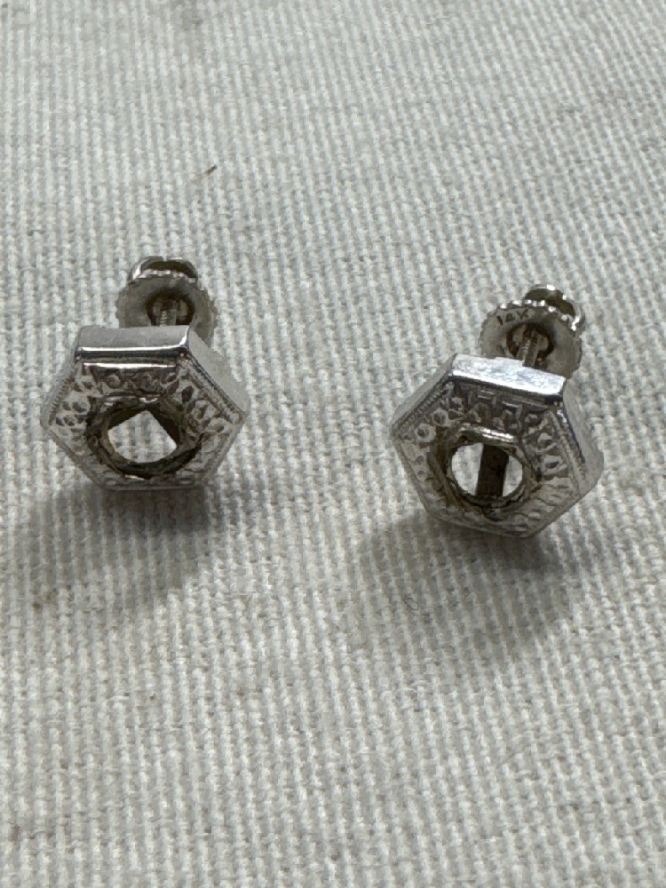 Hexegon Setting Stud Earrings With 14Kt White Gold Screw Backs - Backs 0.5 Grams - Total weight 1.7 Grams