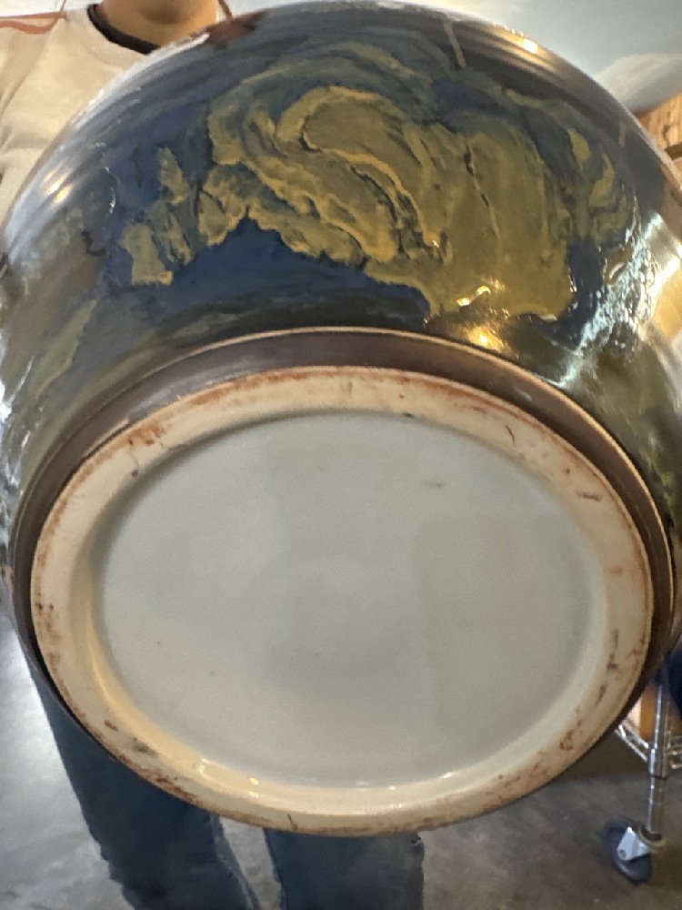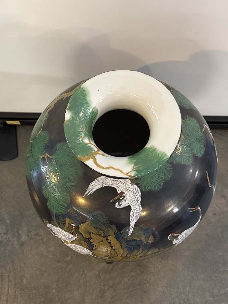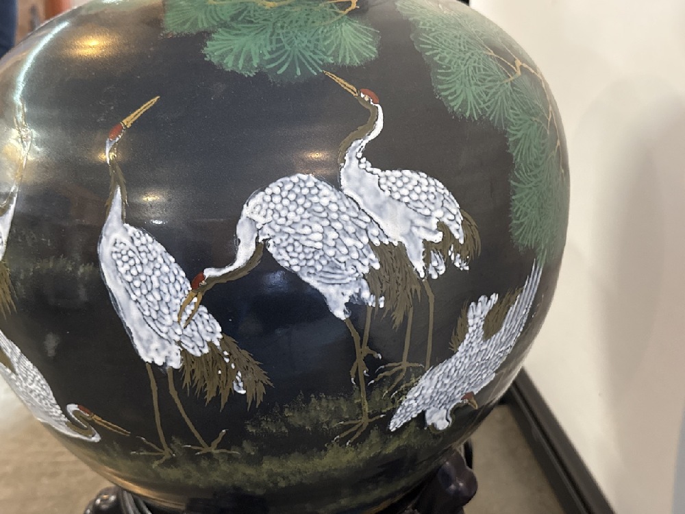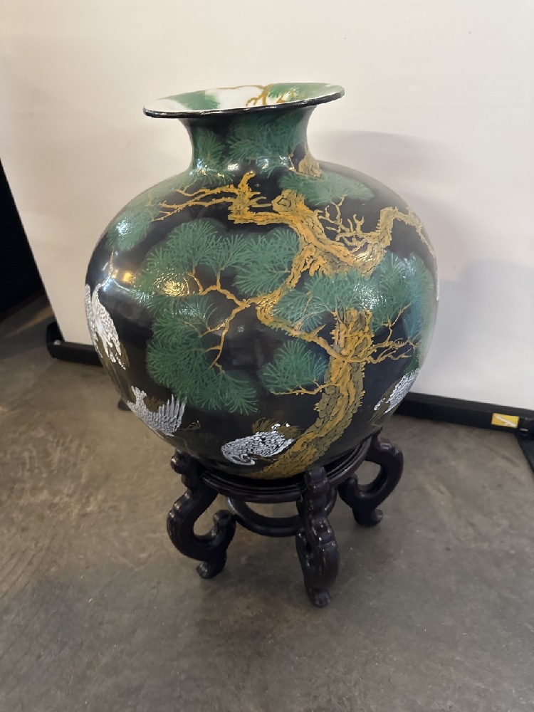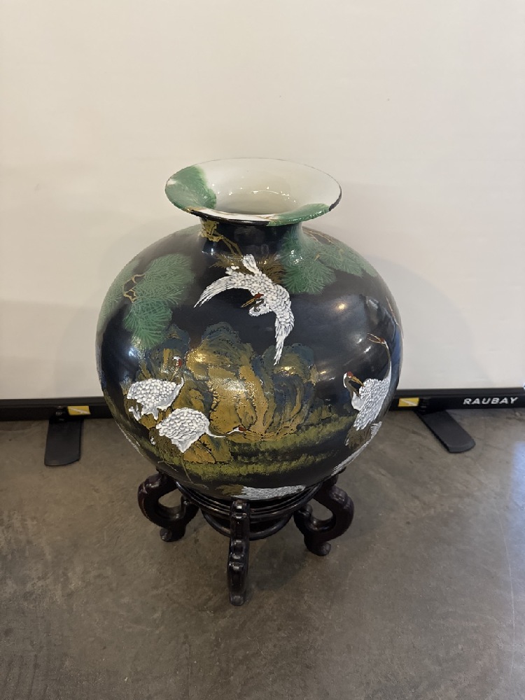 Vtg. Chinese Jardiniere Ceramic Vase W/ Stand - Hand Painted- 22” Tall Vase , 12” Tall Base