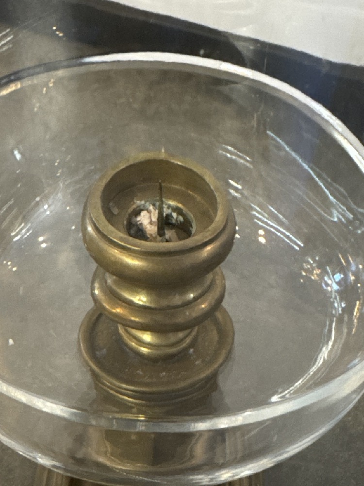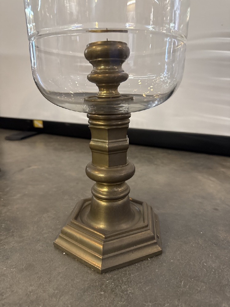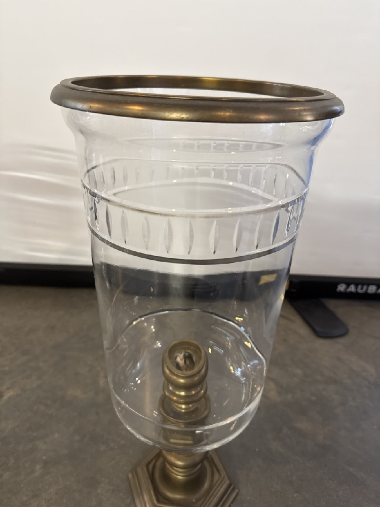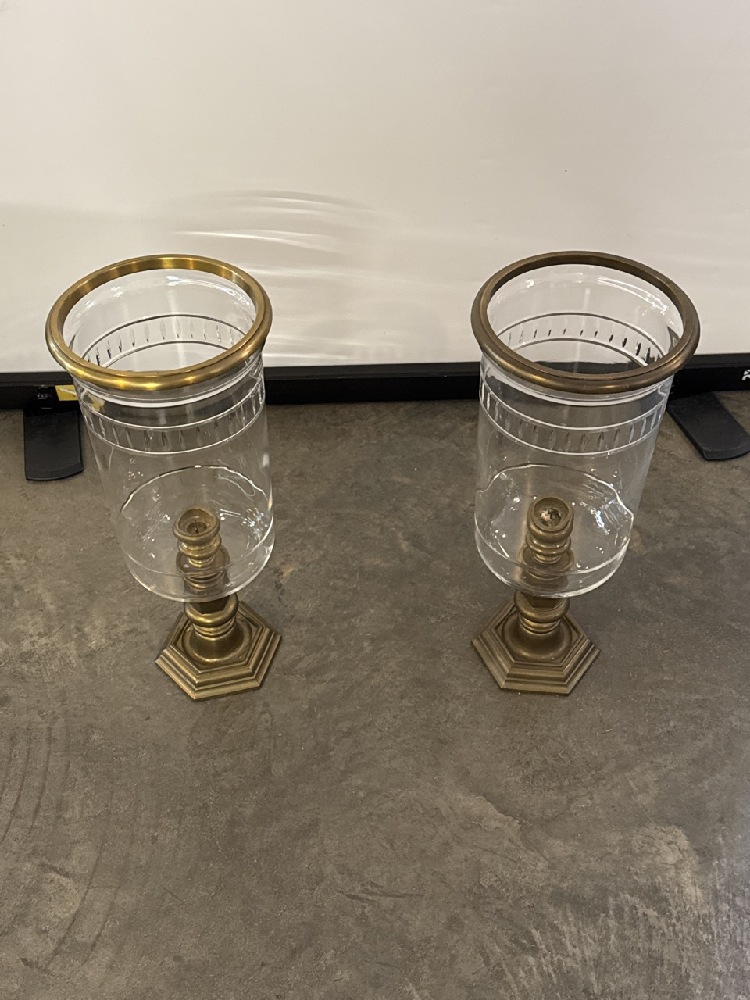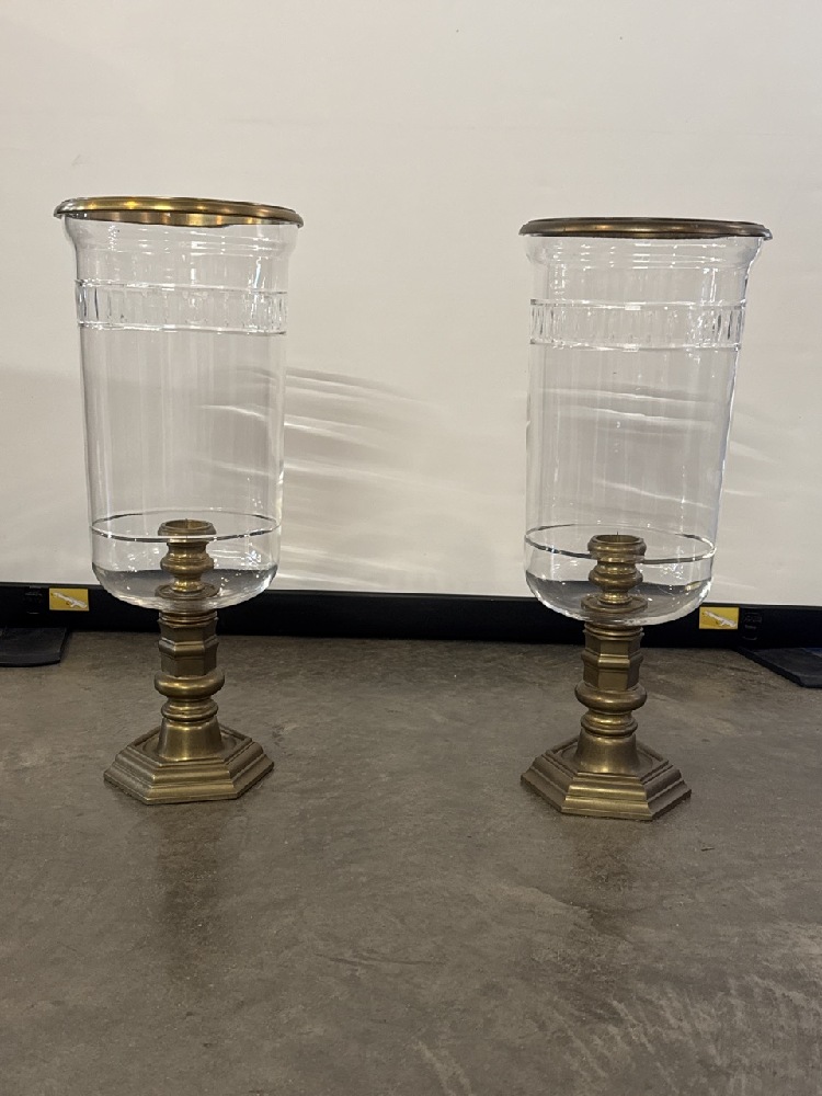 Pr. Large Ralph Lauren Brass and Glass Hurricane Candle Holders - 21” Tall x 8 1/2” around top