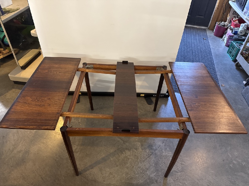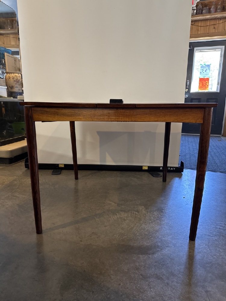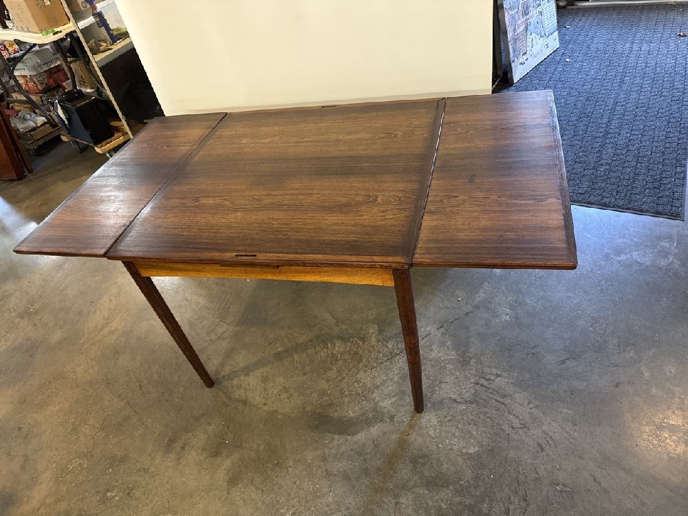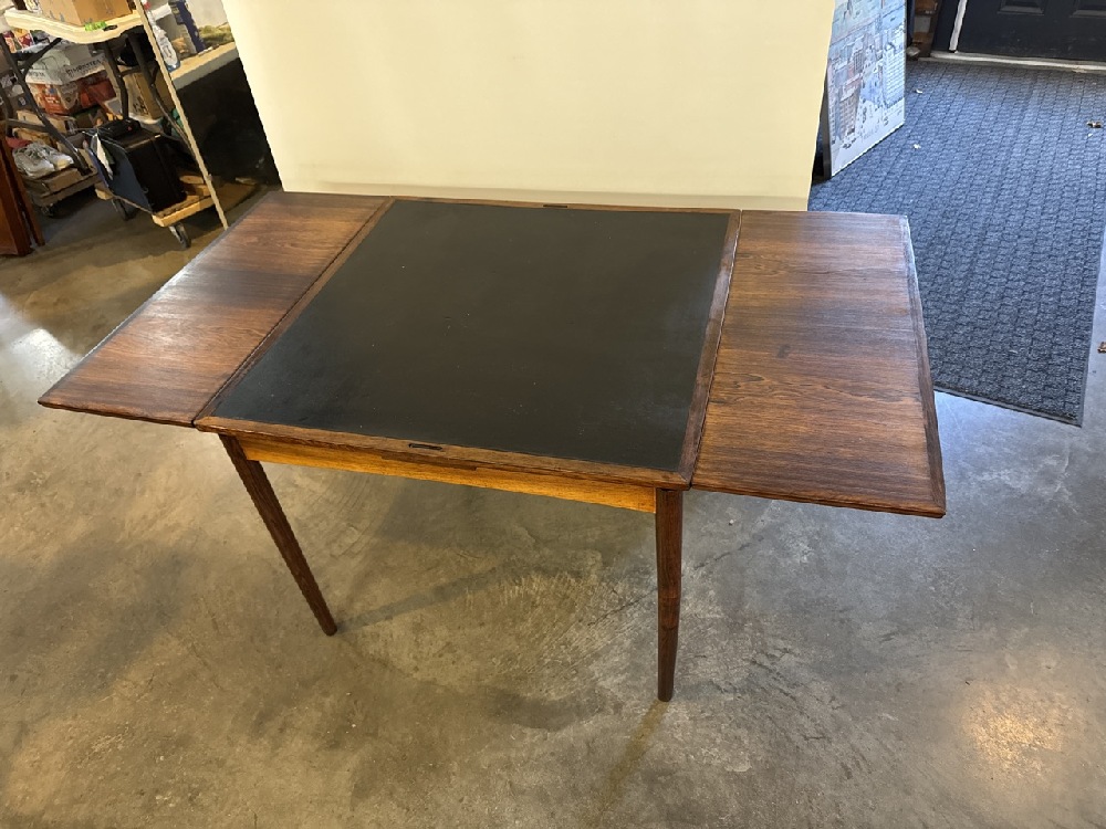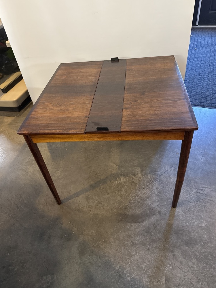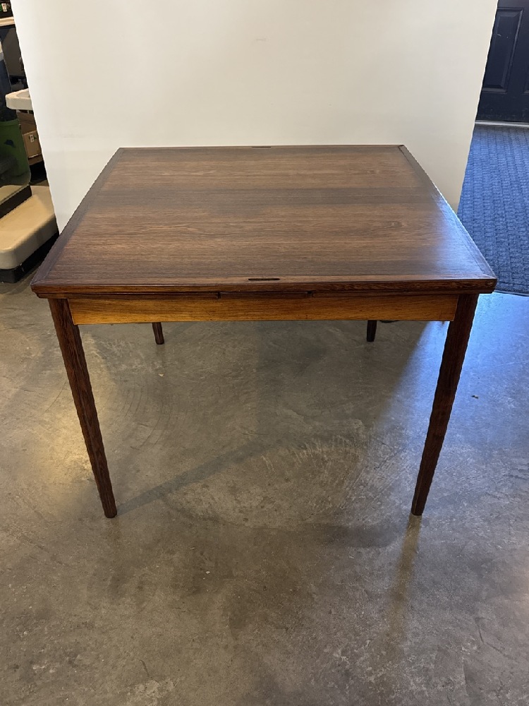 Poul Hundevad MCM Danish Hidden Leaf Rosewood and Leather Reversible Table - Made in Denmark - 35 1/4” Square / With Leaves 63” x 35 1/4” - 27 1/2” Tall