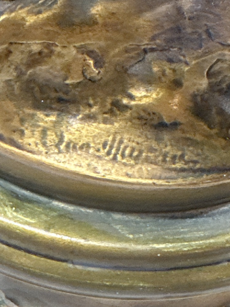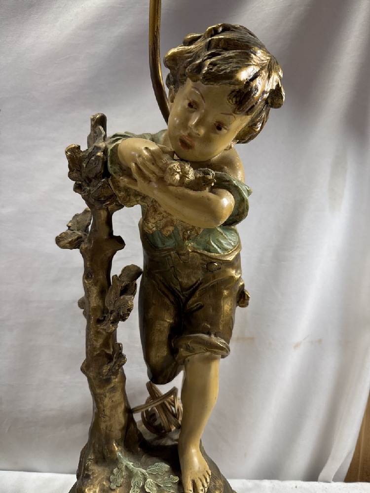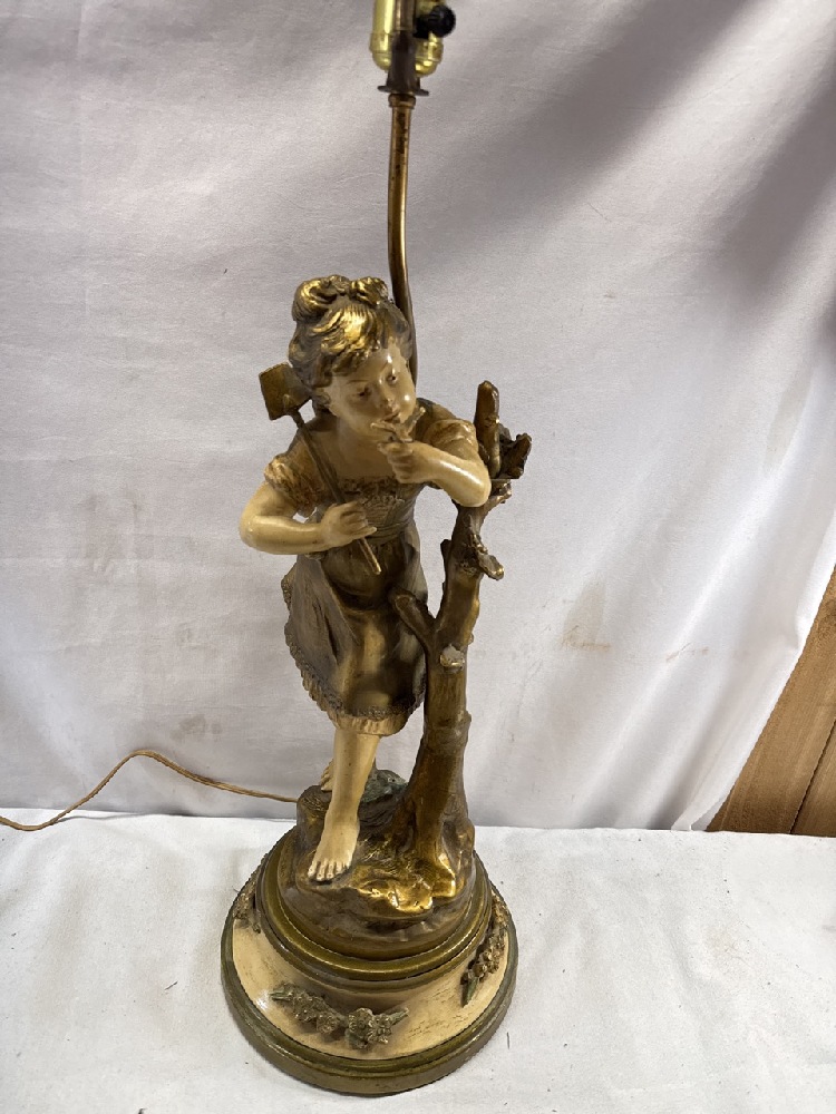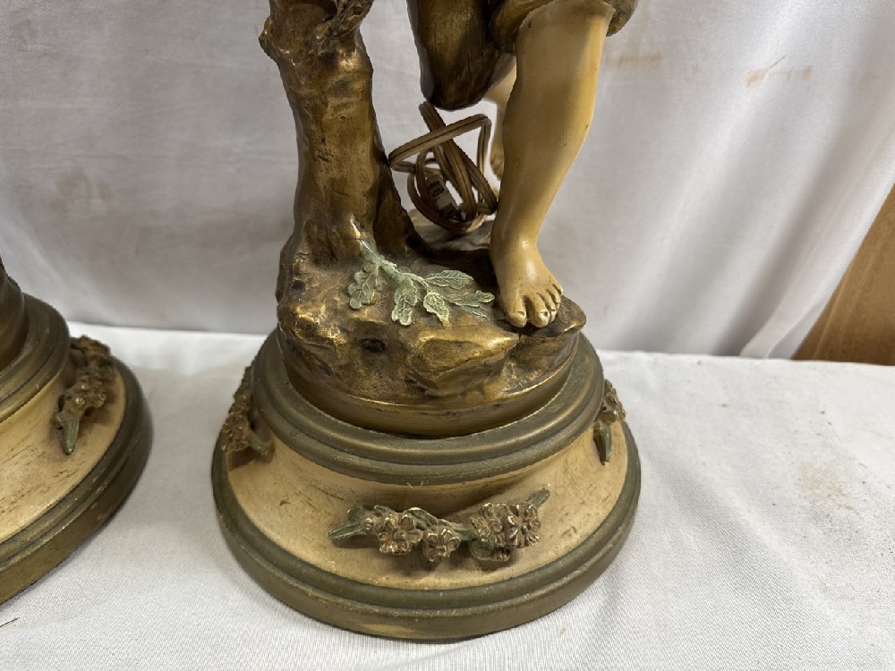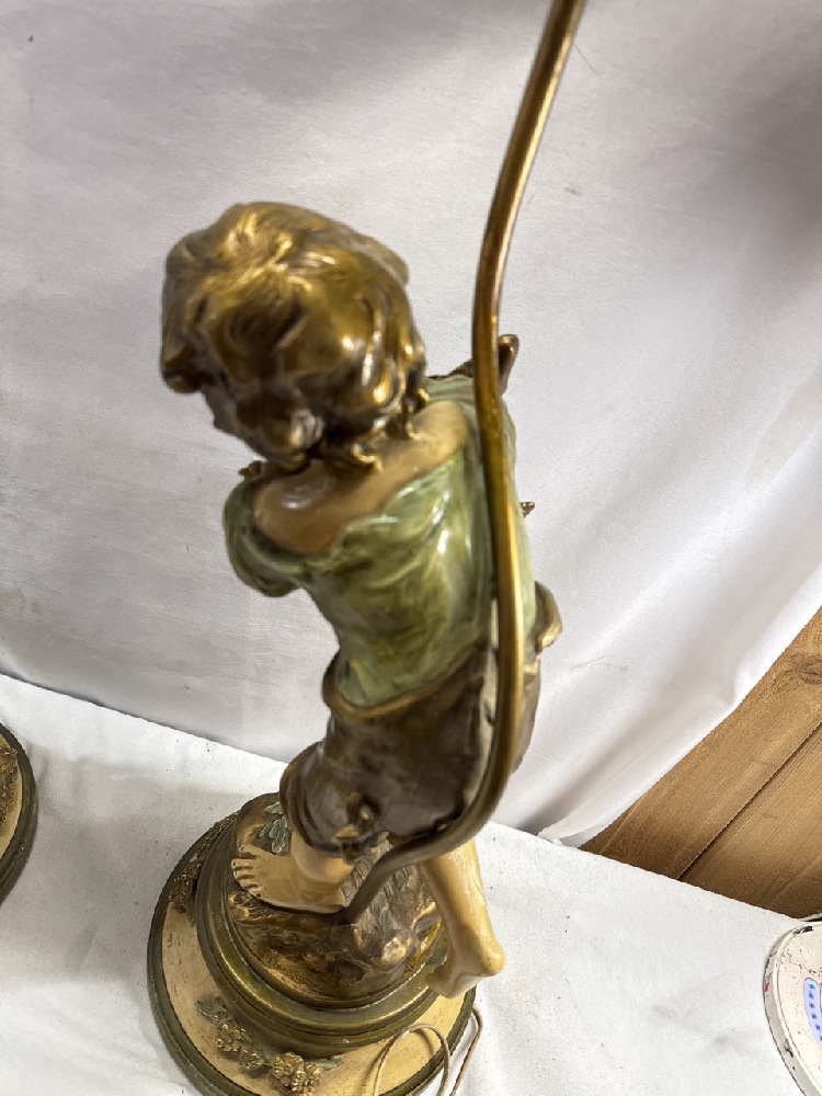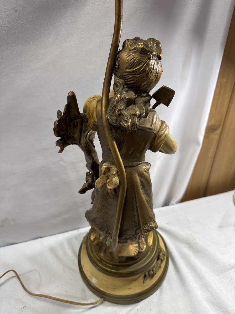 Pr. Vtg. Moreau Art Nouveau Figural Bronze and Metal Lamps Collection Francaise - 38” Tall (one Missing Shade Finial)