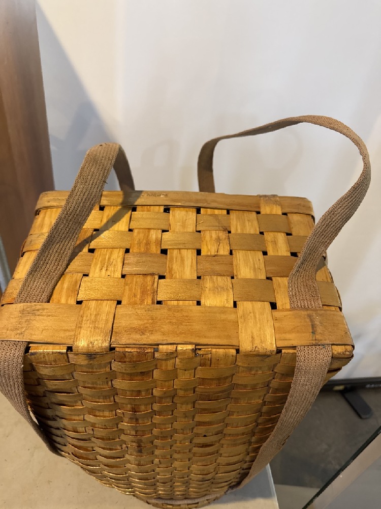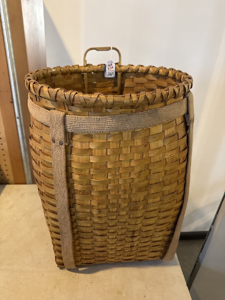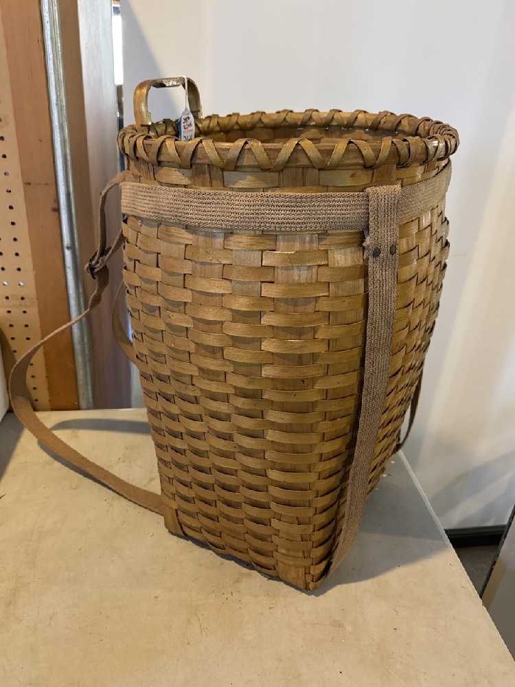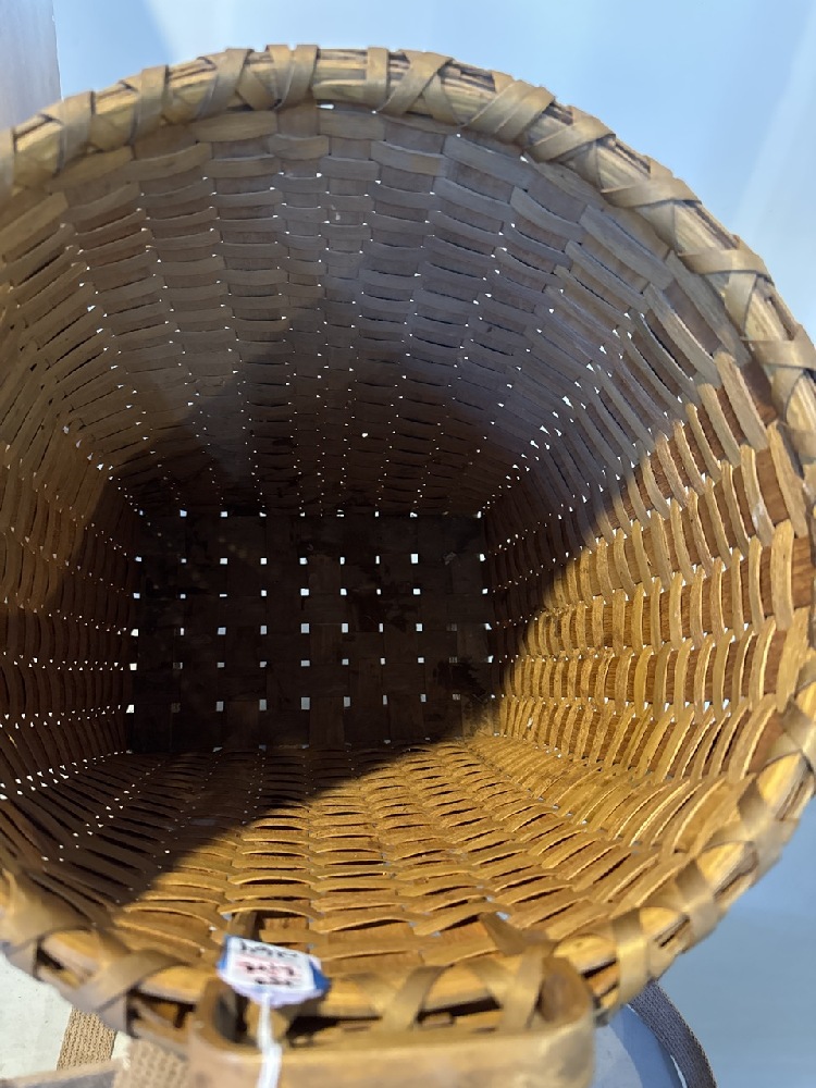 Native American Trappers Basket/Backpack Signed J. Arquette (Henry Jake Arquette) Mohawk Indian made of Hand-Pounded Black Ash Splints- 21” T x 15” W x 14” D