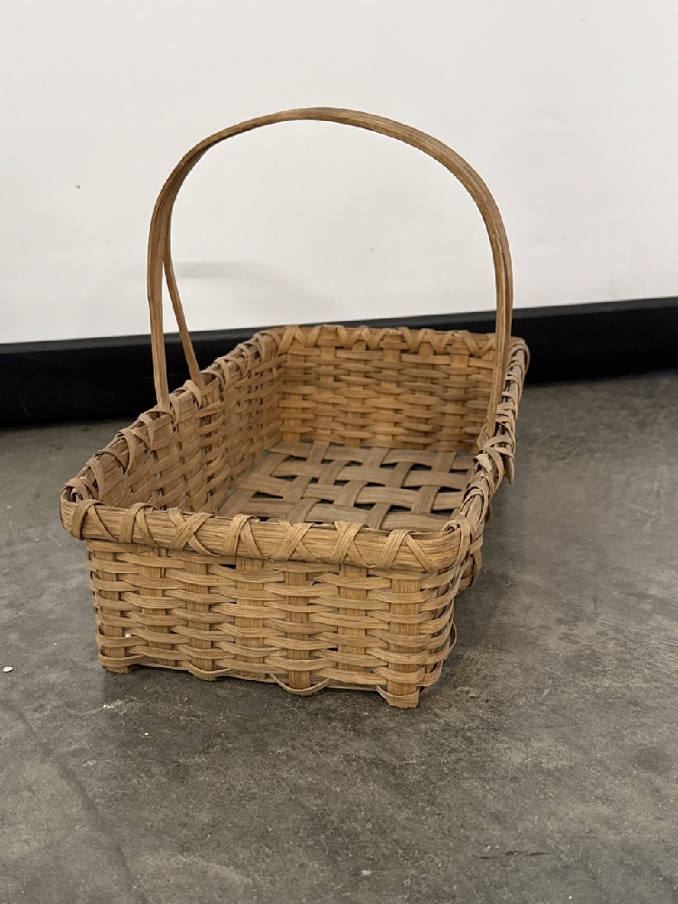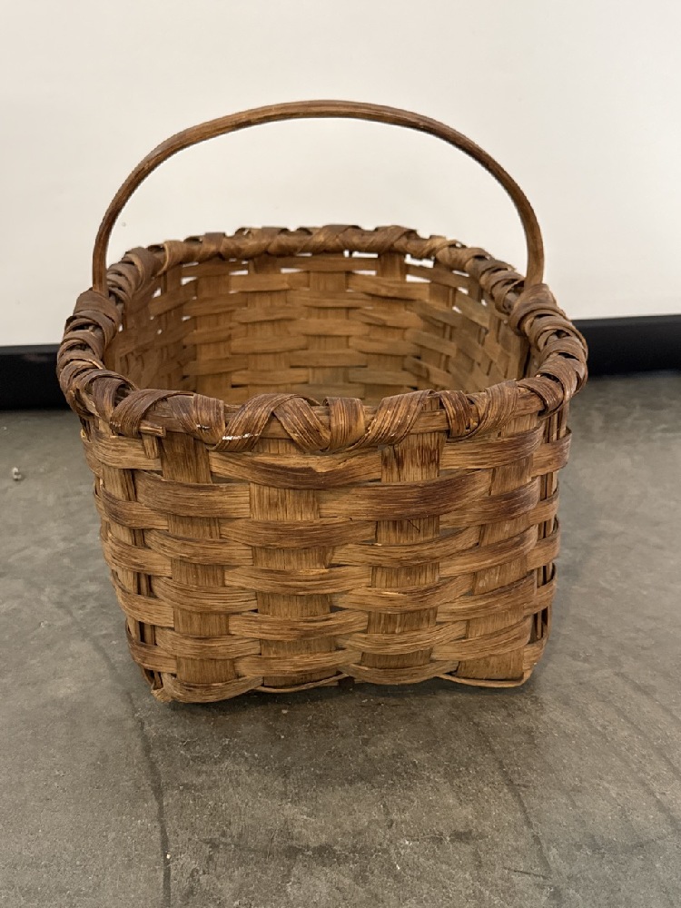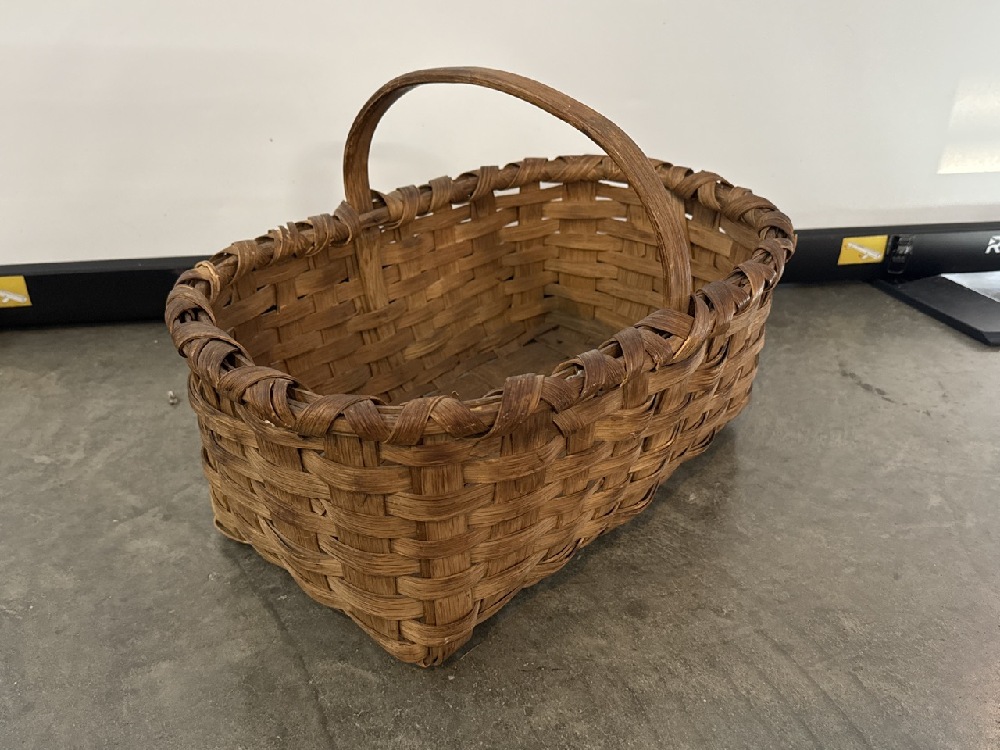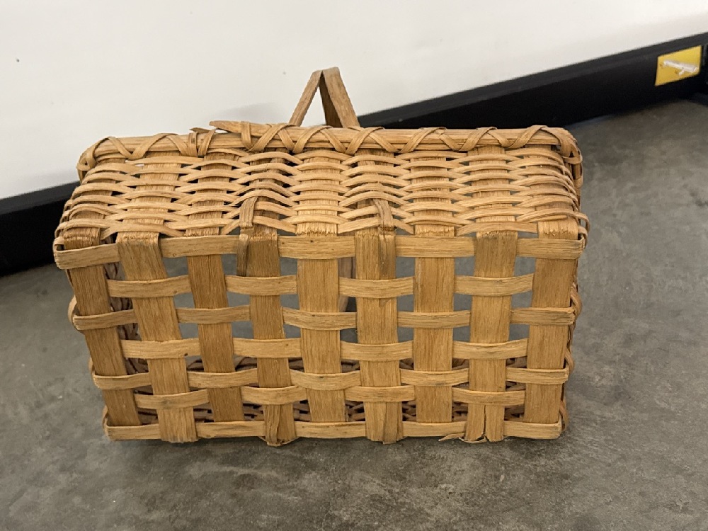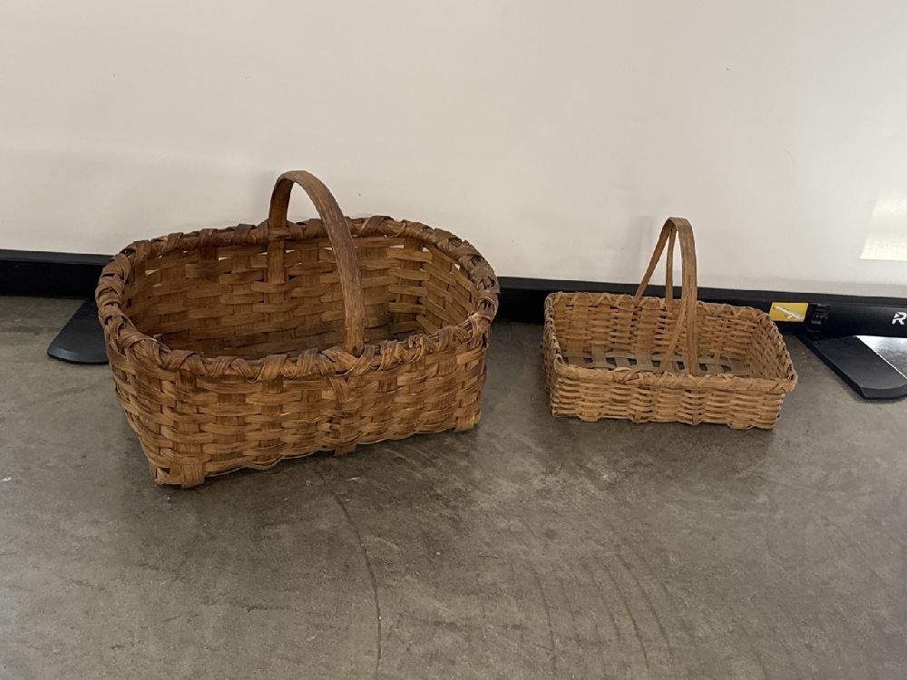 Antique Hand Woven Baskets - 17 1/2” x 12 1/2” x 7” Tall/ 11 1/2” Tall (top of handle) , 12” x 7 1/2” x 3 1/2 Tall / 9 1/2” tall (top of Handle )
