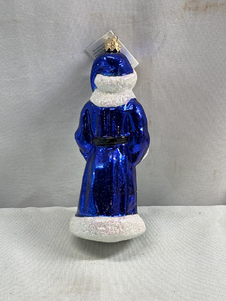 Christopher Radko Sapphire Santa Claus Glass Christmas Ornament - 7” Tall