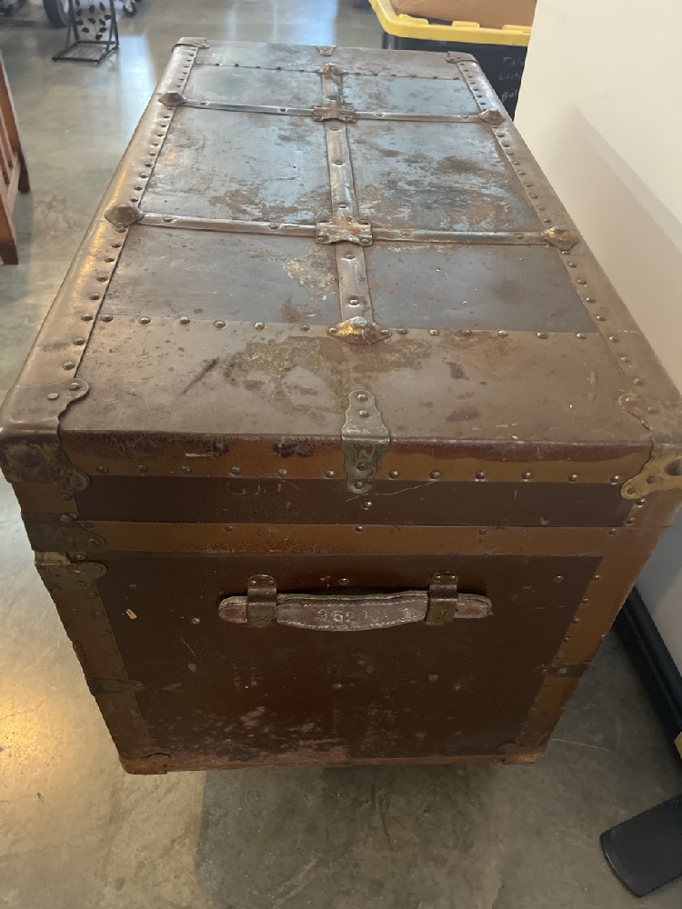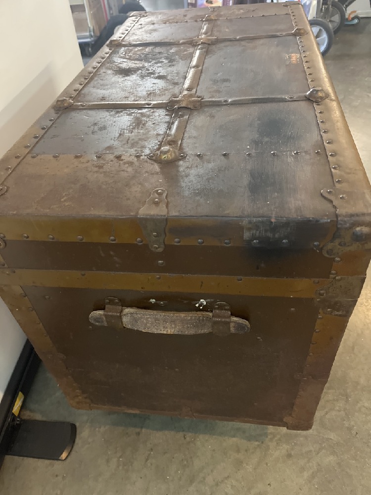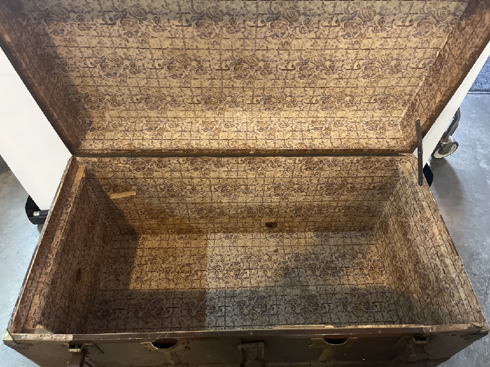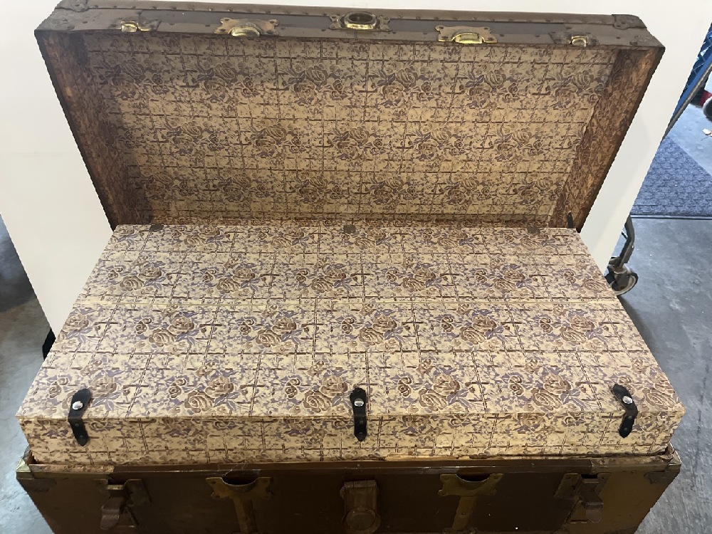 Antique Greyhound Luggage Steamer Trunk With Insert- 36” L x 18.5” W x 20.5” H