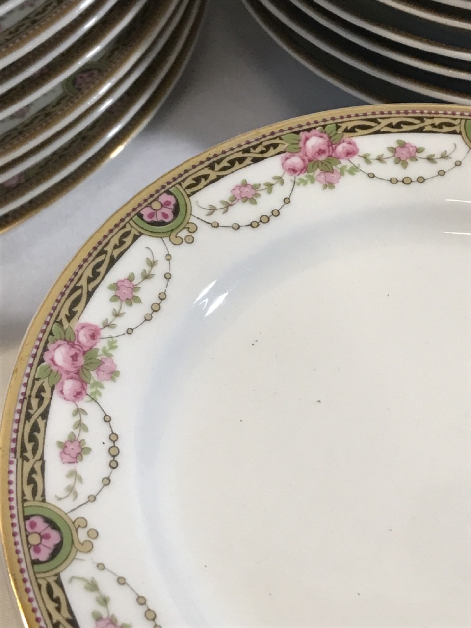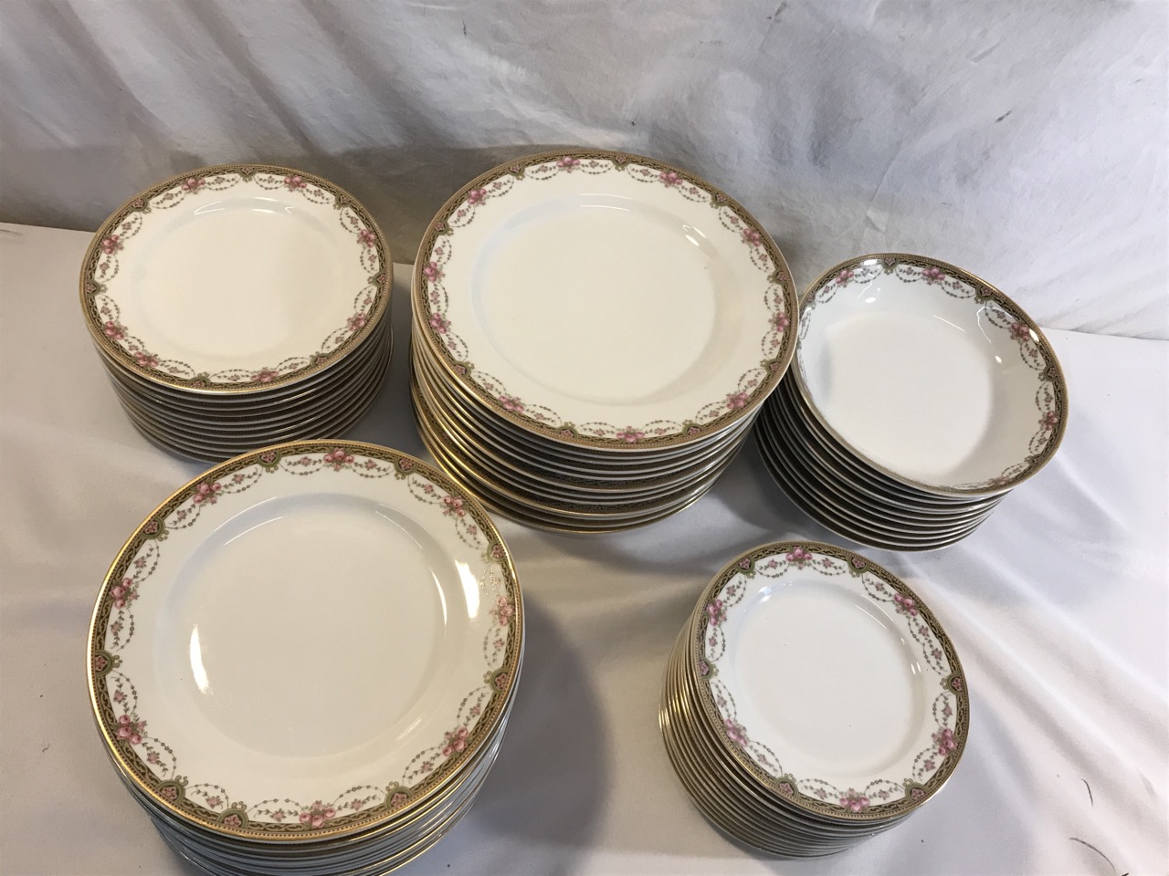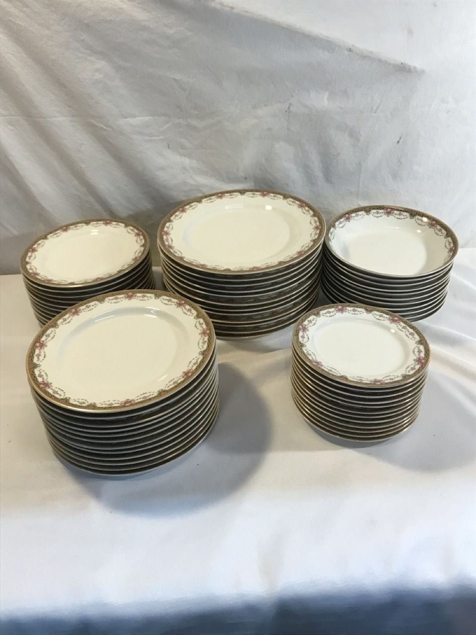 Limoges Table Service Set - 12 Dinner Plates ( 9 3/4”) , 12 Luncheon Plates ( 8 1/2”) , 11 plates (7 1/2”), 12 Bread Plates ( 6 1/2”), and 11 Bowls (7 1/2”)