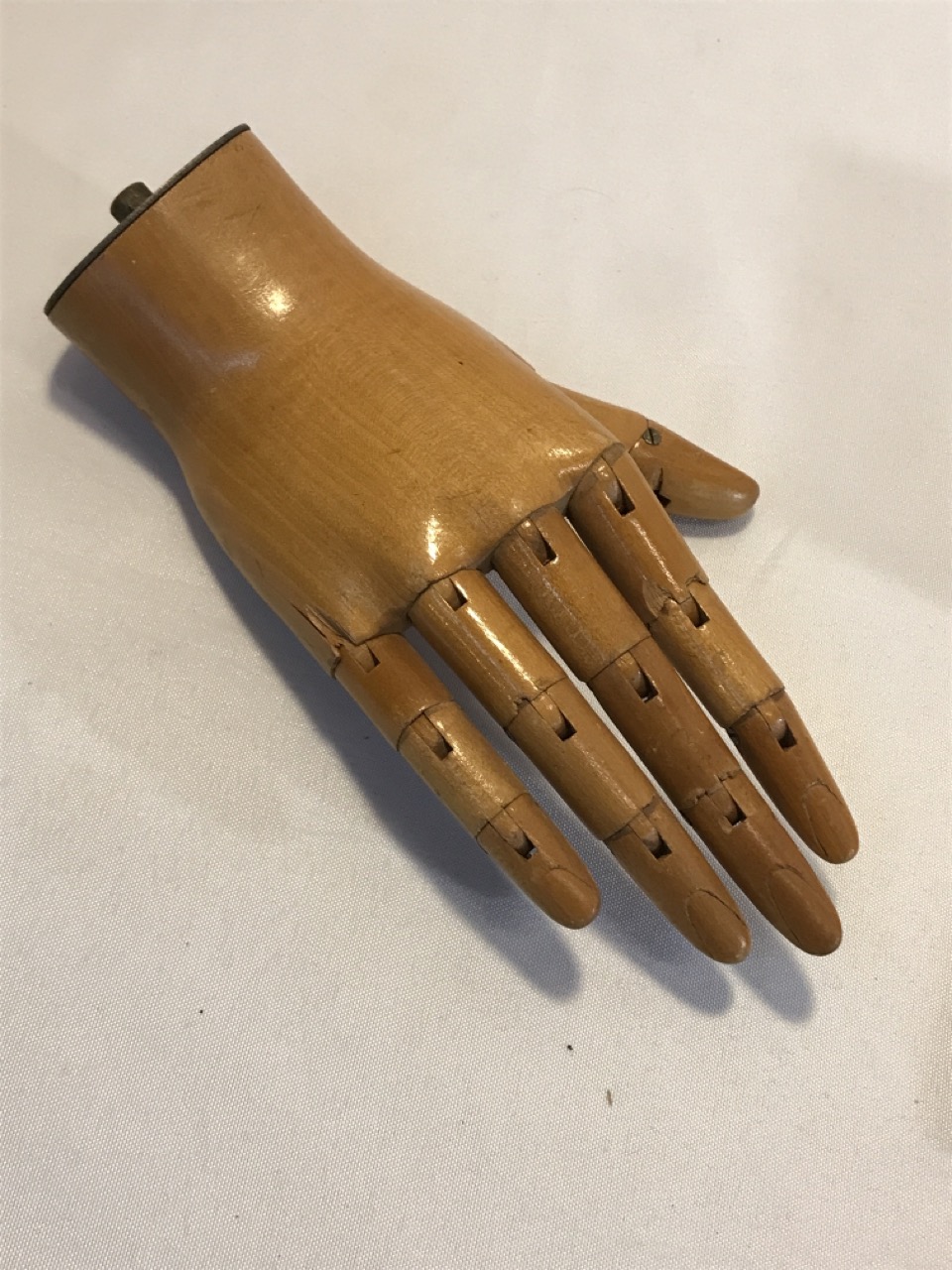 Antique Articulated Wooden Mannequin Hand- 7 1/2” Long