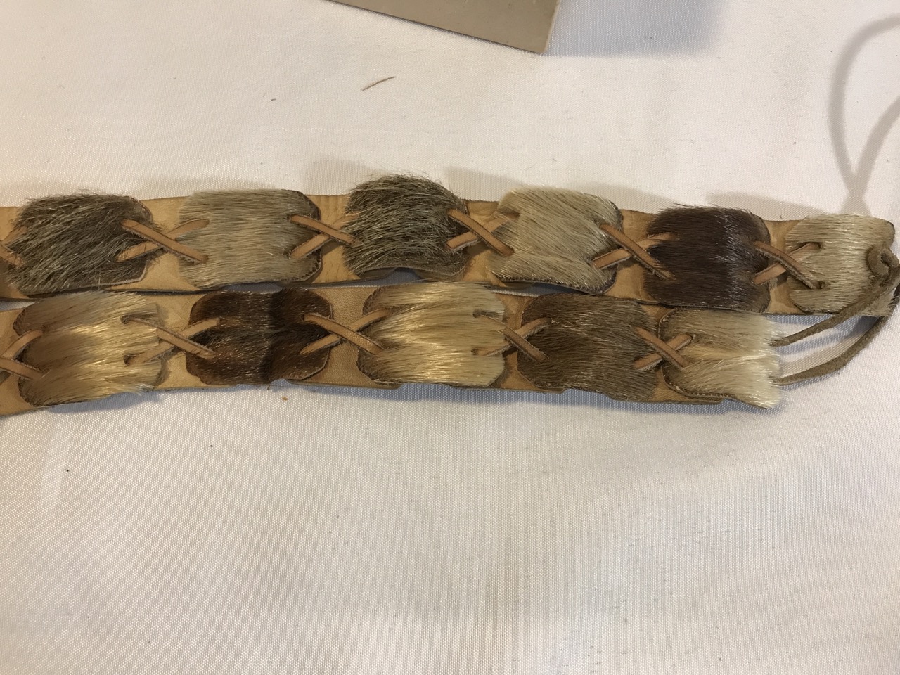 Alaskin Sealskin & Elk Belt and Fur Bows - 29” Long Belt and 2 1/2” Bows