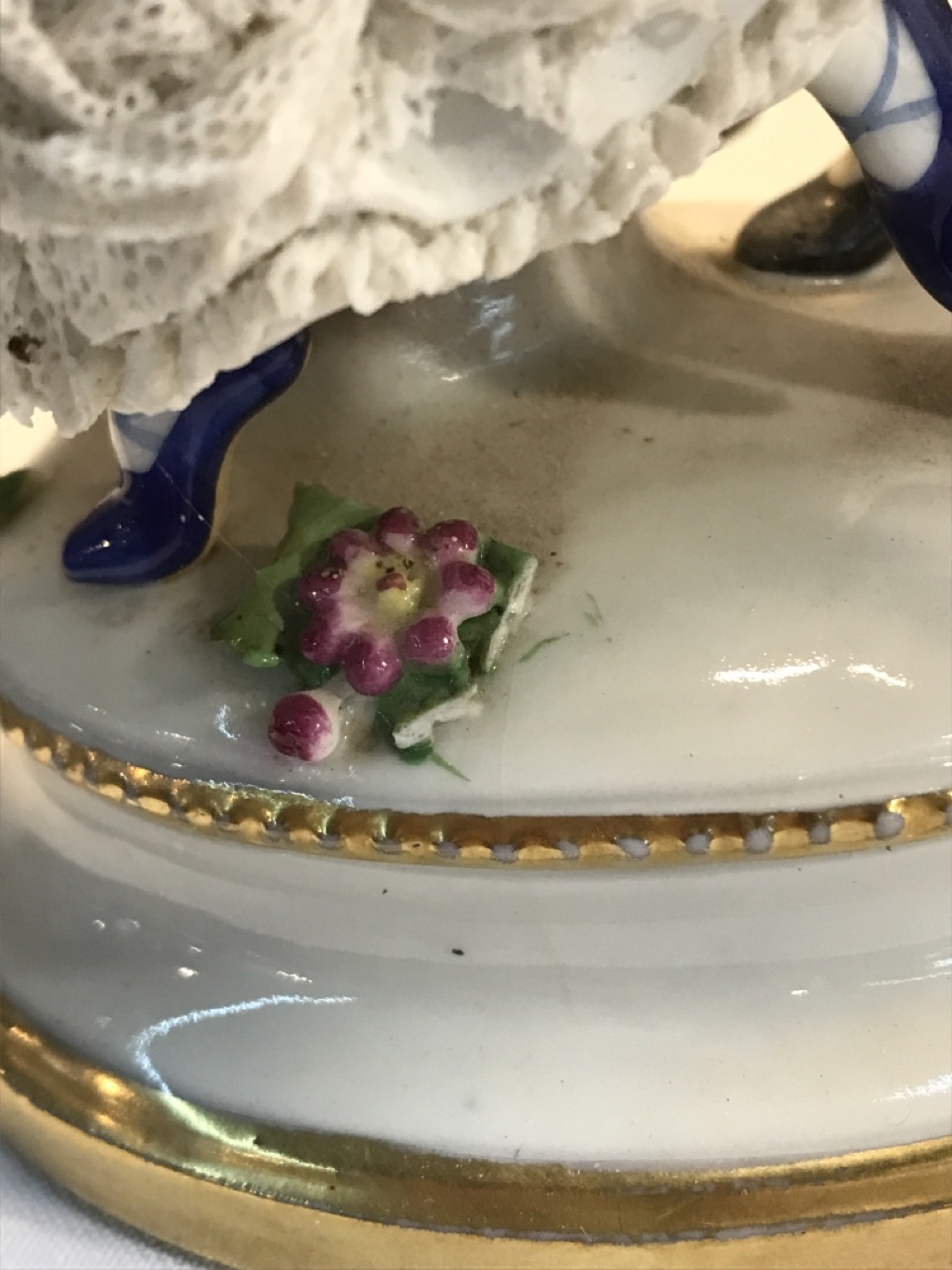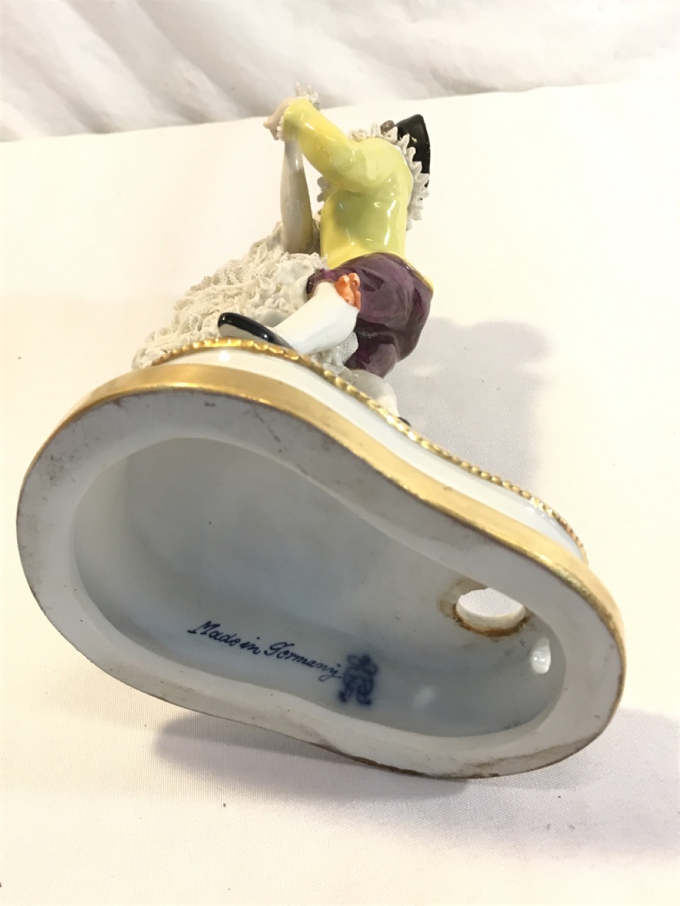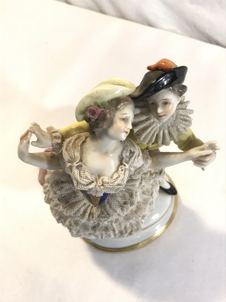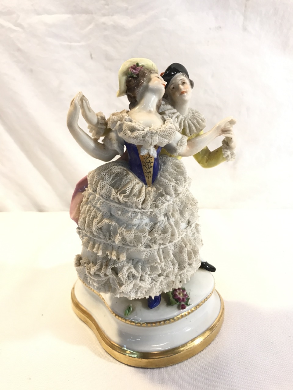 Dresden Lace Figural Lamp Base - Dancing Couple- 7 1/2” Tall x 5 1/4” Long x 4” Wide
