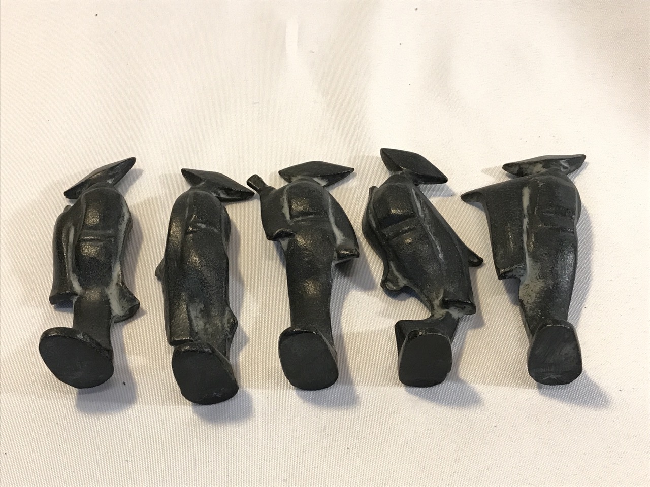 Set Of Five Vintage Cast Iron Figurines of Japanese Geisha Dancers - 4 1/4” Tall