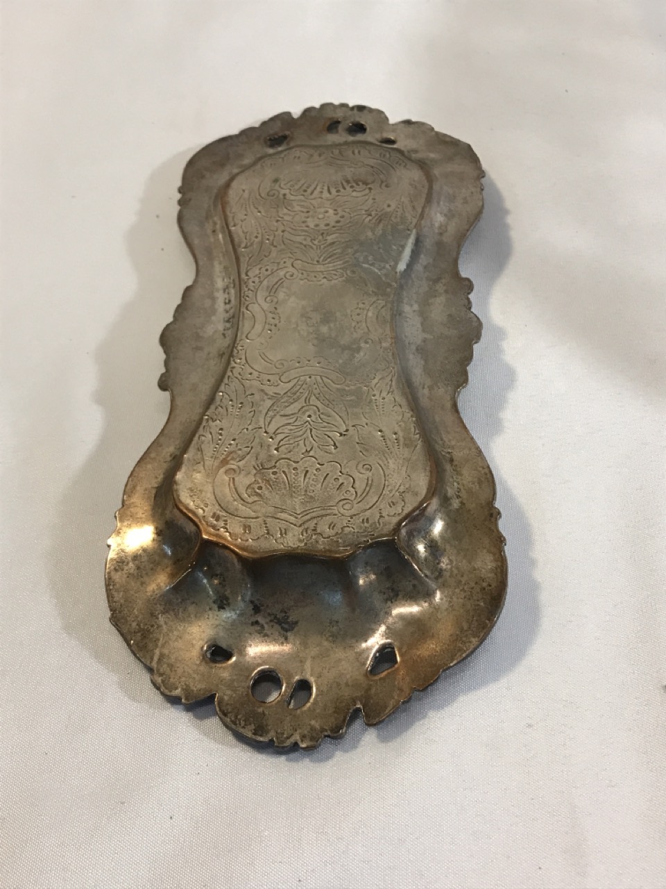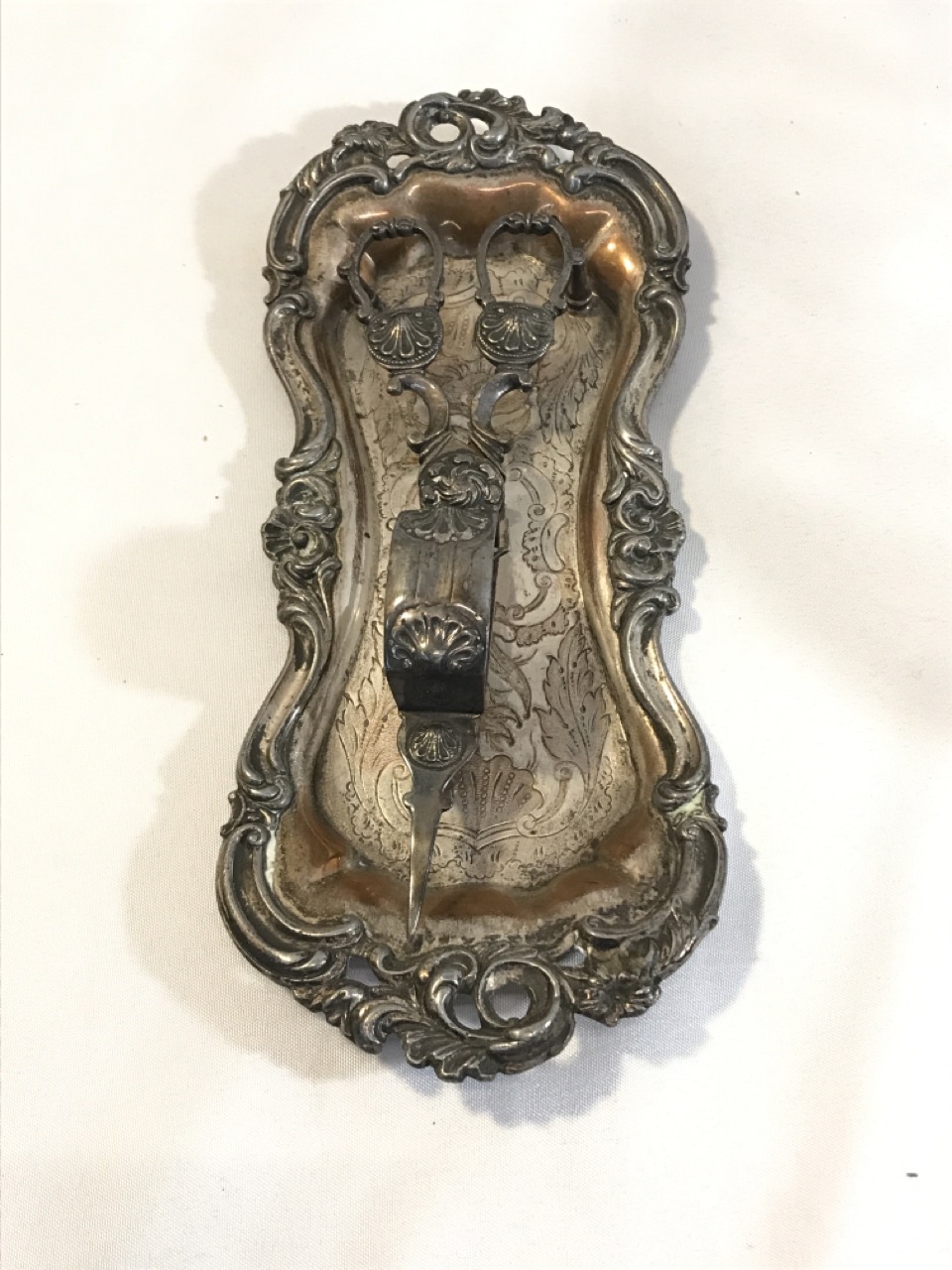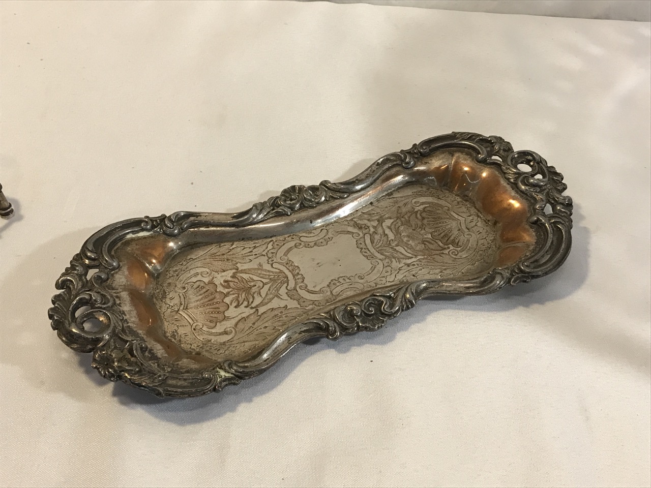 Victorian Silver Plate Wick Snuffer on Copper Under plate Tray