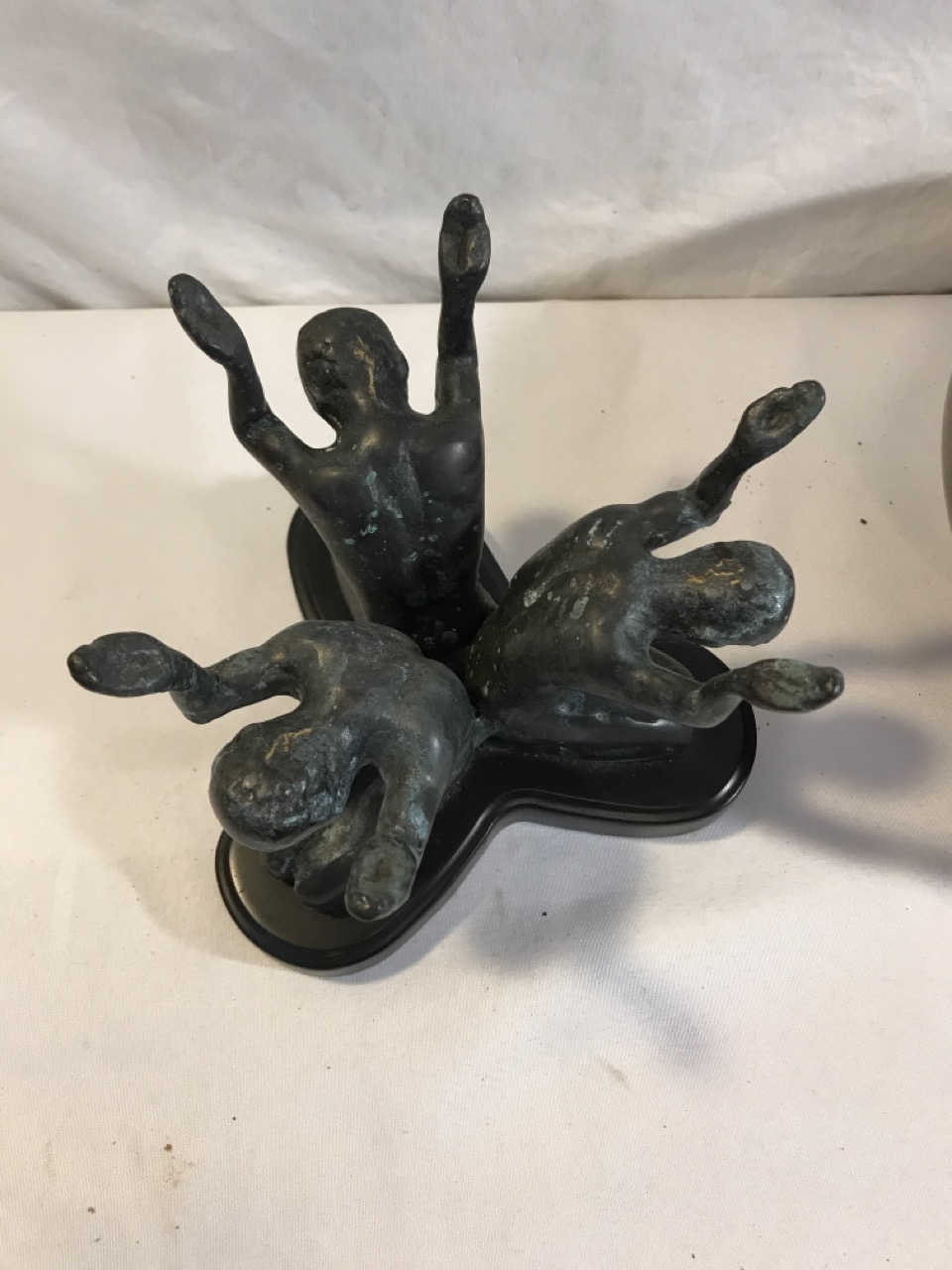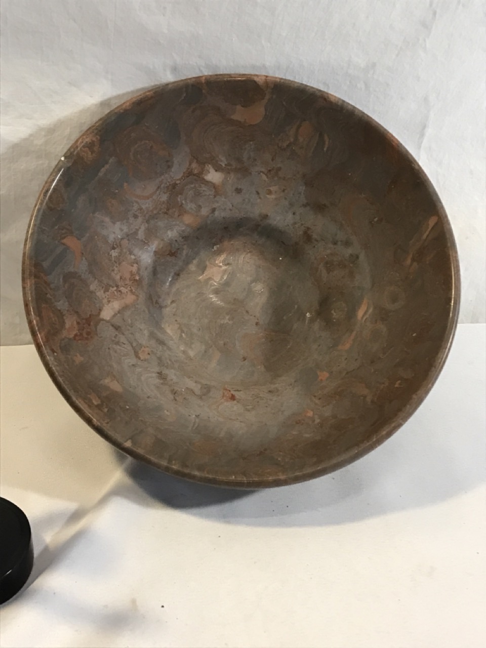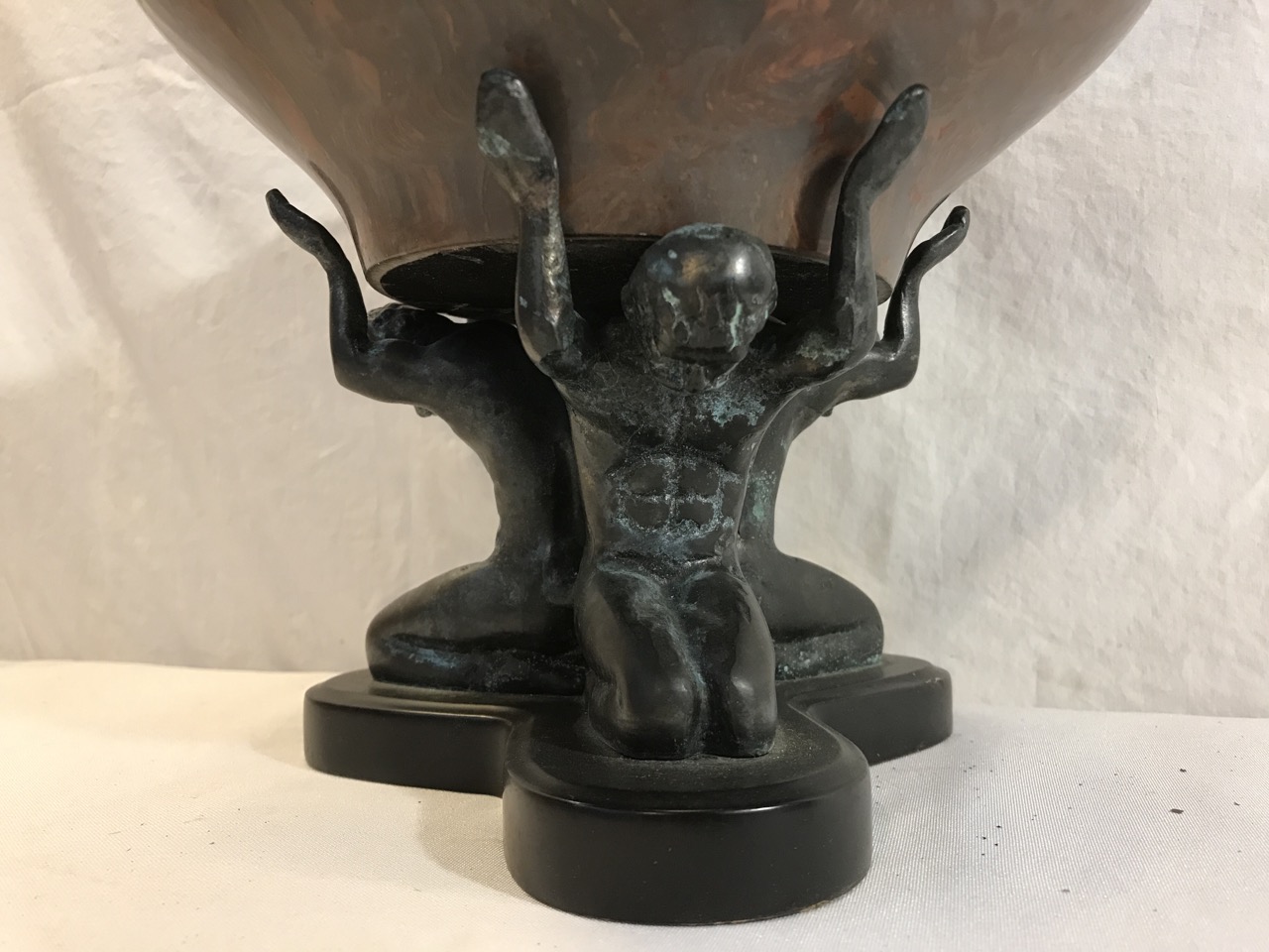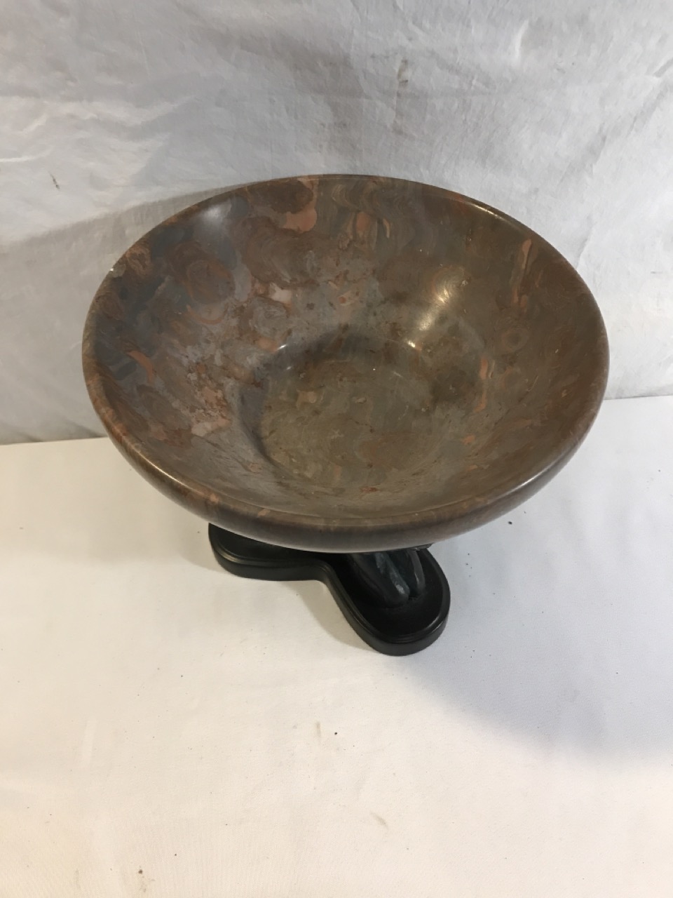 Art Deco Bronze Centerpiece With Agate Stone Bowl - Peir1