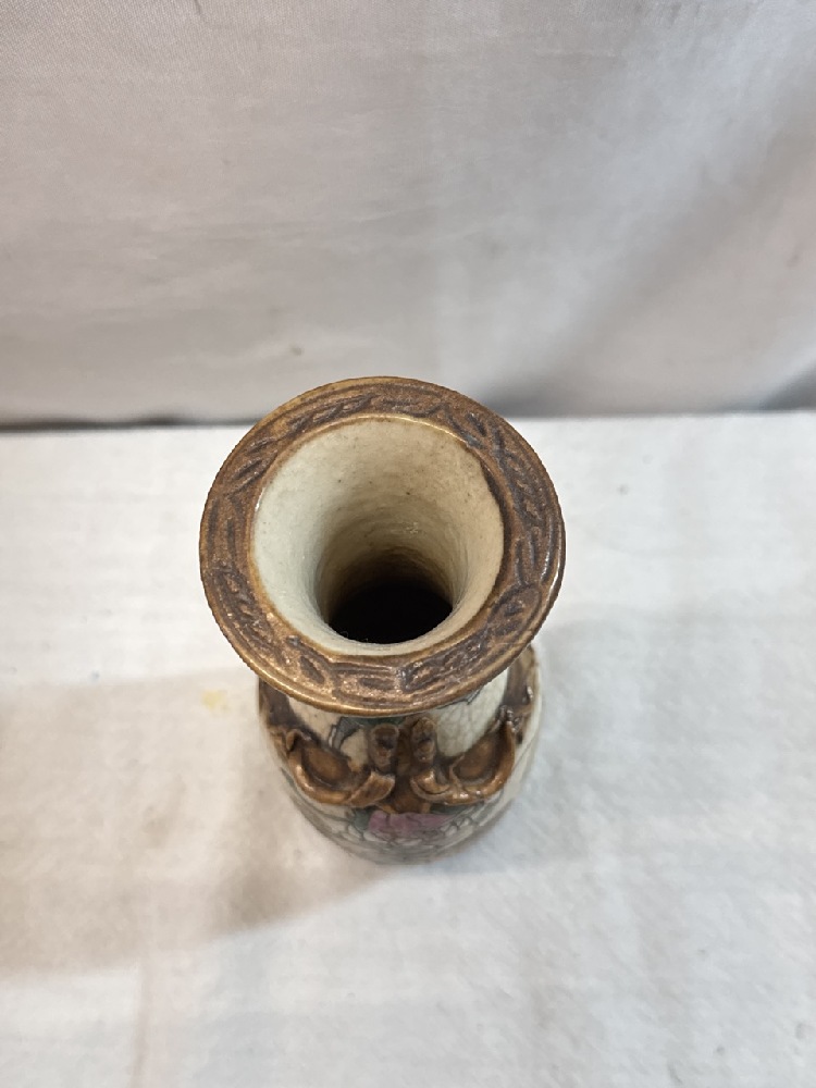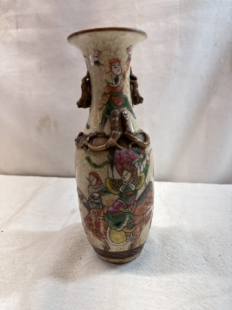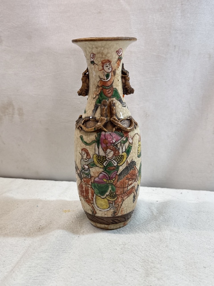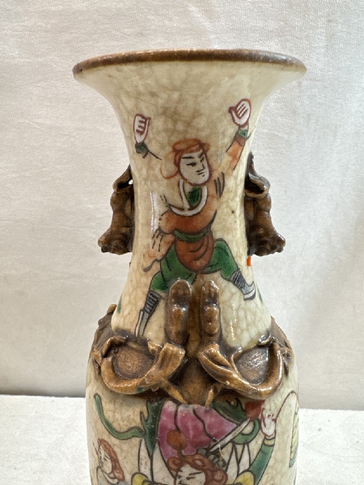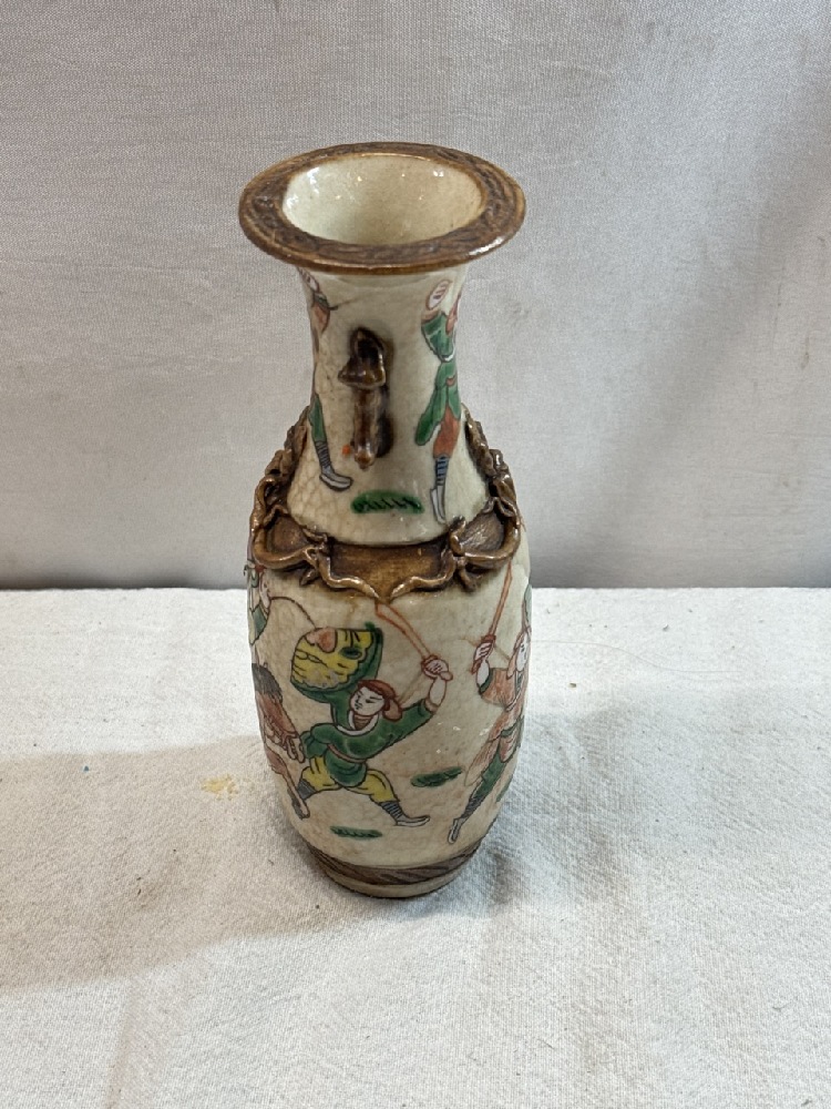 19th Century Crackle Glaze Chinese Chinoiserie Famille Verte Vase - 8” Tall - Signed