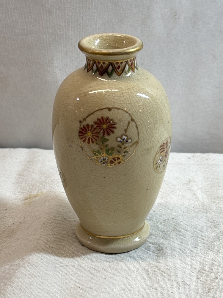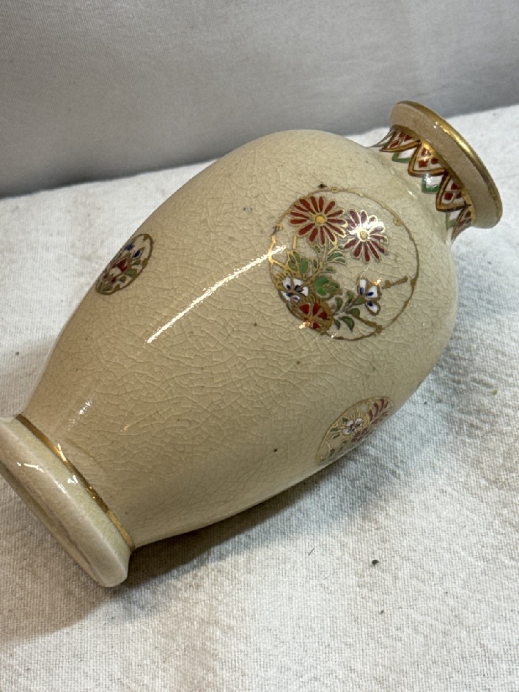 Japanese Satsuma Ware Pottery Vase - Hand painted marking ~ 5” Tall