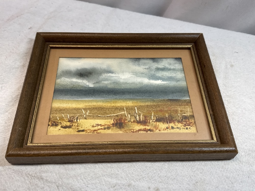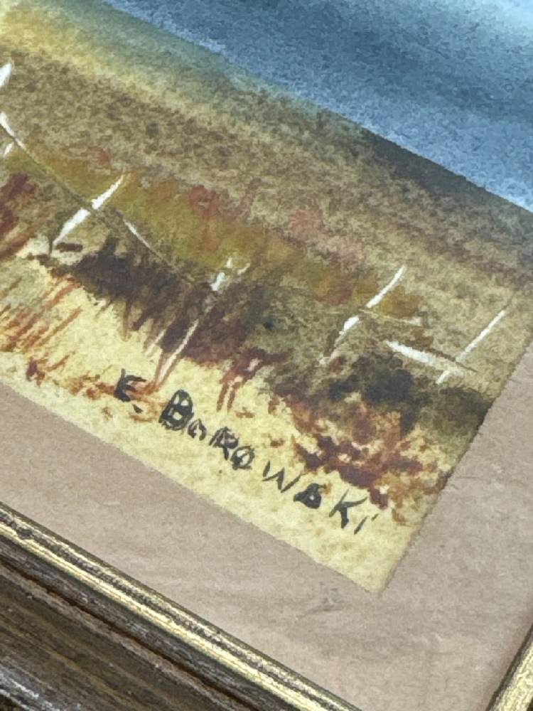 Signed Landscape Watercolor Painting ~ E. Borowski ~ Framed 9” x 7”