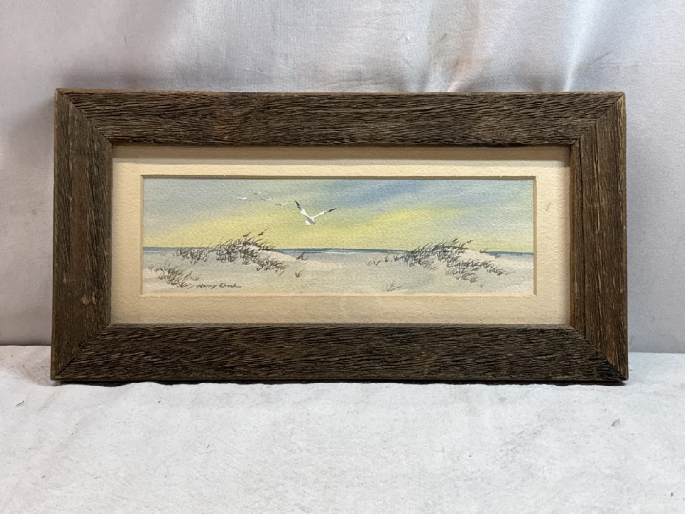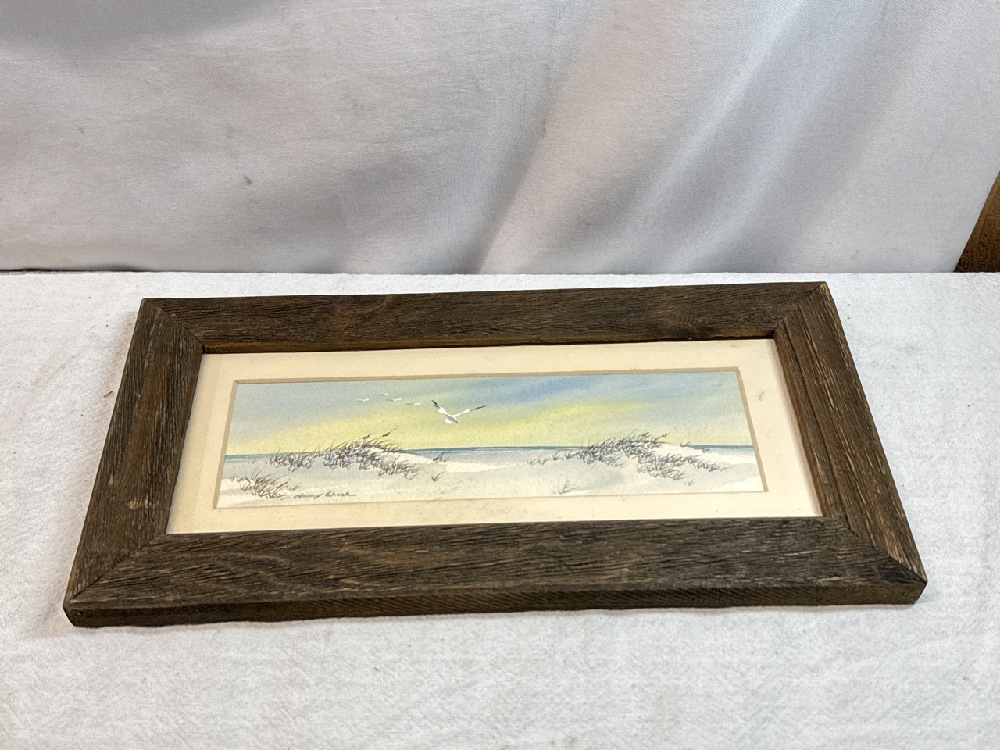Pencil Signed Landscape Watercolor Painting - Nancy Ghook ~ 14 1/2” x 7 1/4” Barn wood Framed