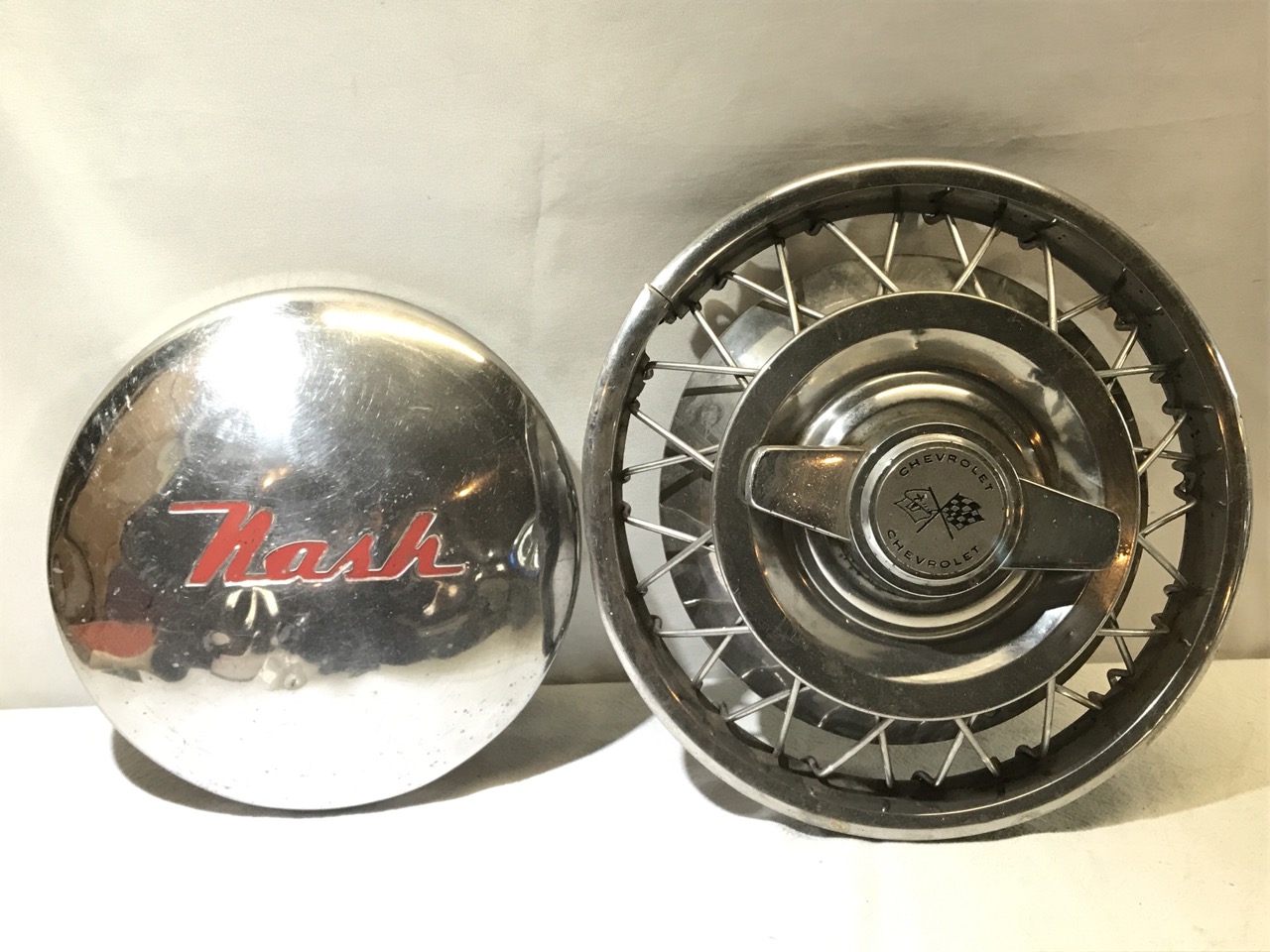 Vtg. Automobile Hubcaps - Nash Rambler Statesman and Chevy Corvair Wire Wheel