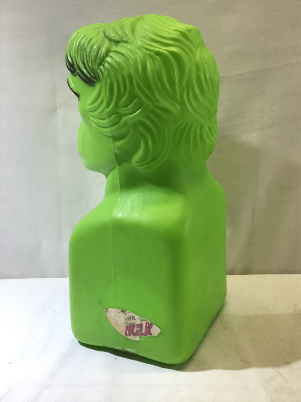 Vtg. 1978 Incredible Hulk Plastic Coin Bank Blowmold ~ No. 1955~ Bottom has been Cut but piece is still present ( see Photos)